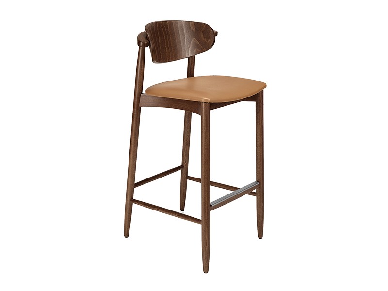 - Barkruk van beukenhout, met gestoffeerde zitting.