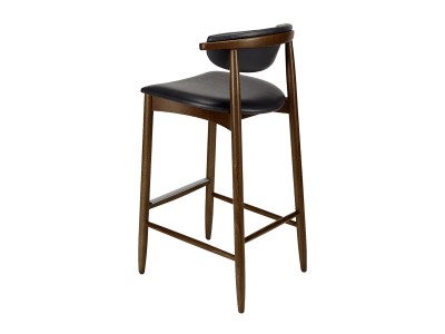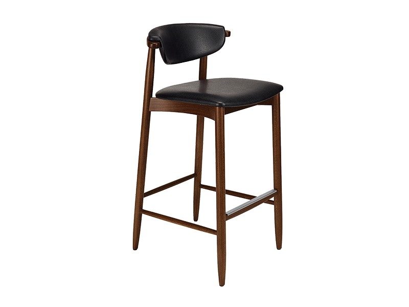 - Barkruk van beukenhout, met gestoffeerde zitting en rugleuning.