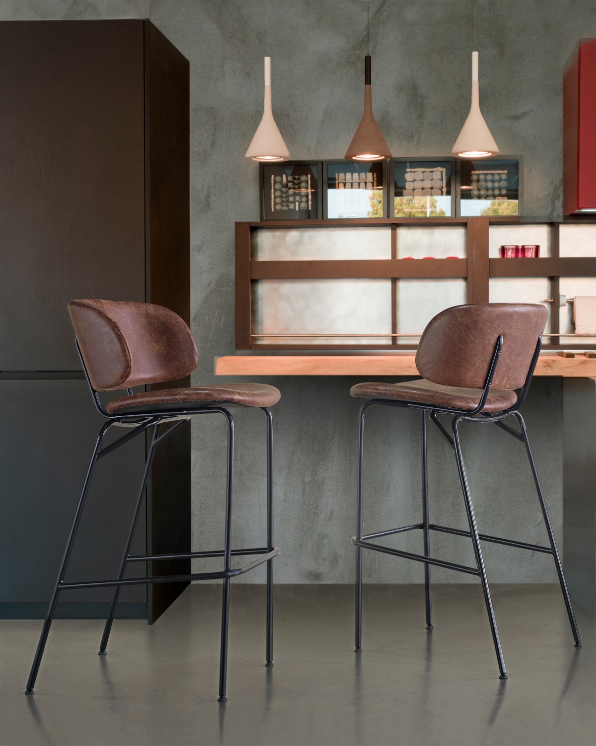- Juli barkruk kan gepersonaliseerd worden door de bekledingsmaterialen en de stalen frame kleurafwerking te kiezen: RAL-kleur of chroom.