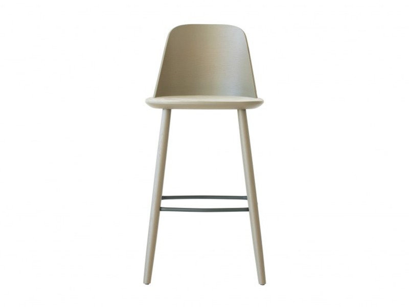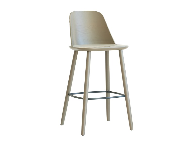 - Houten barkruk met metalen voetensteun, verkrijgbaar in een breed scala aan hout- en metaalafwerkingen.