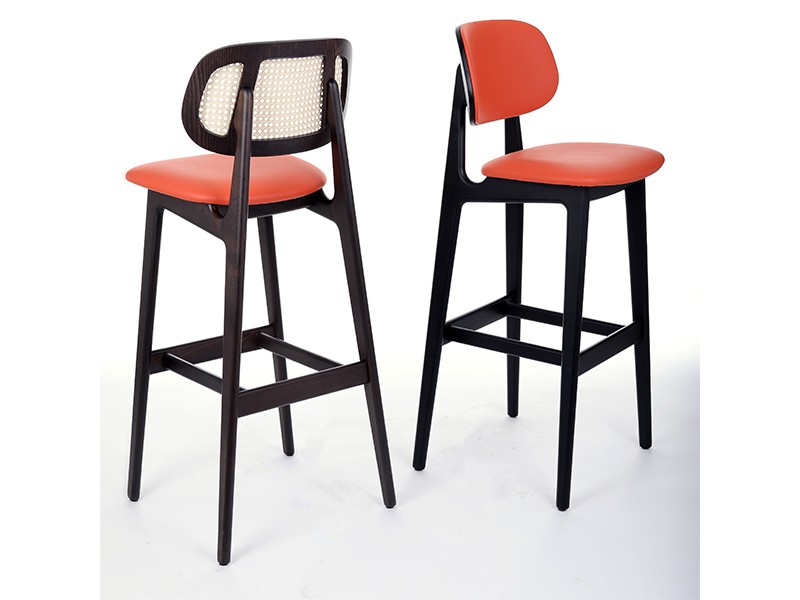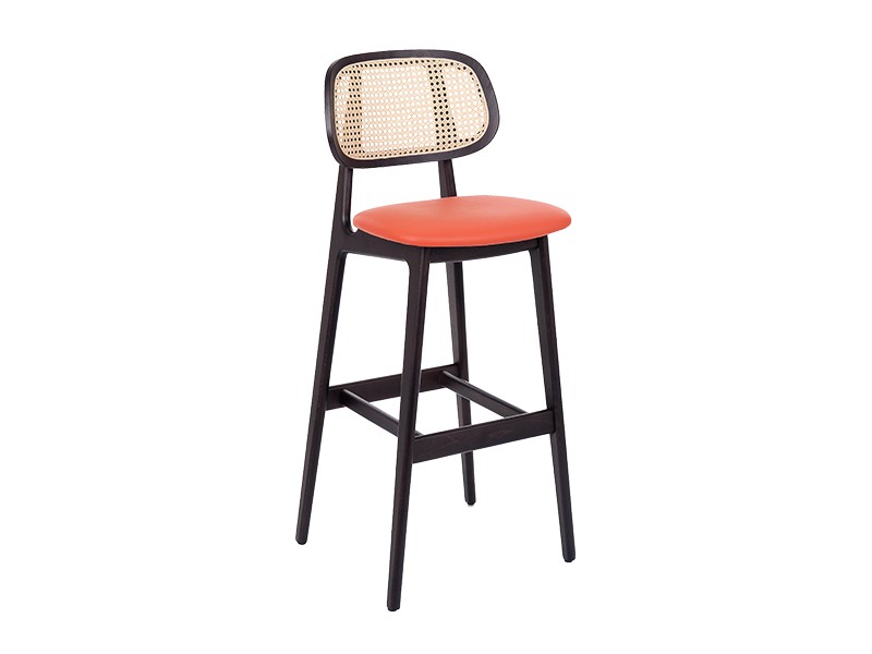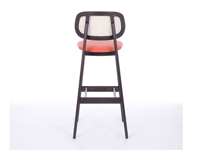 - De kenmerkende rug met rietlook voegt een boeiend accent toe en maakt deze barkruk uitzonderlijk interessant.