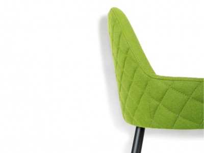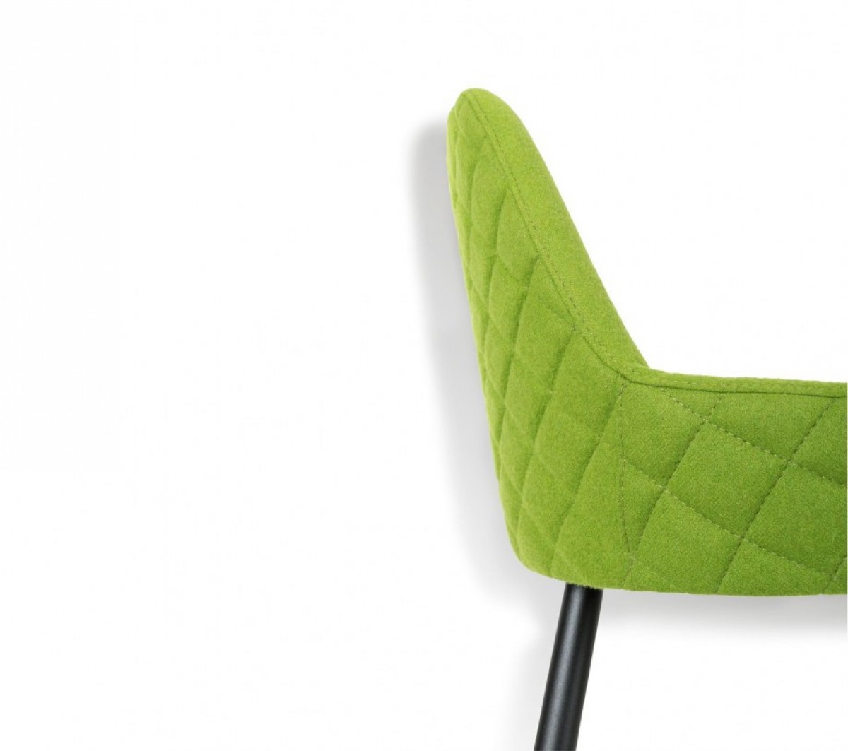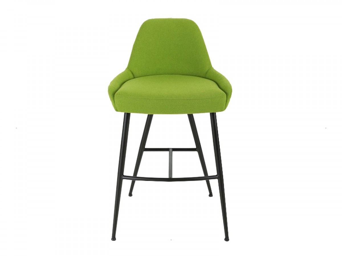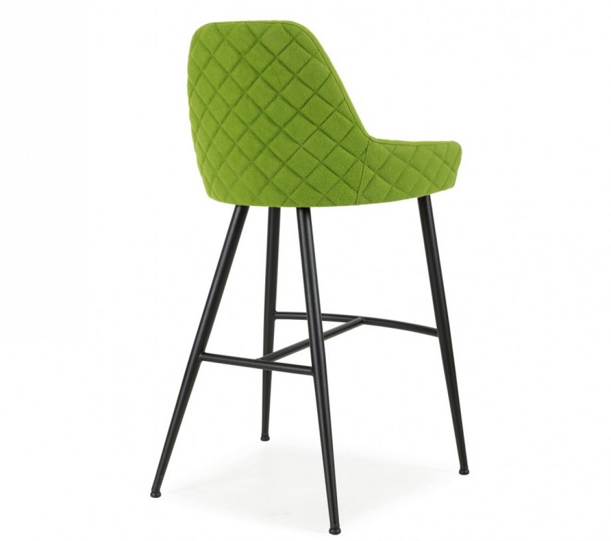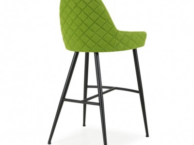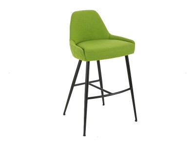 - Gestoffeerde metalen barkruk, conische buisstructuur, verkrijgbaar in verschillende afwerkingen: wit, grijs, zwart, olijfgroen, groen, Bourgondië.