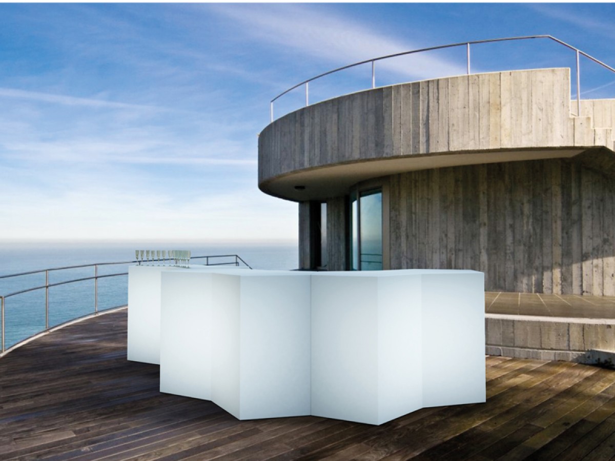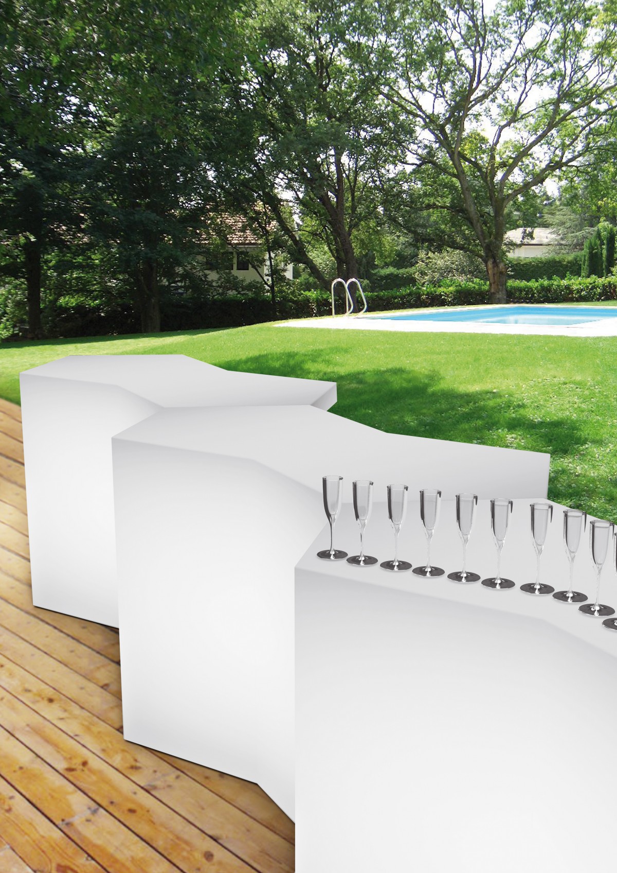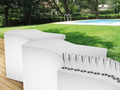 - Ideaal als buitenbar bij het terras, het zwembad, aan het strand, voor een happy hour of een snack. In hoge dichtheid roto-gegoten polyethyleen. De modules hebben een dubbele Pentagon vorm en zijn ontworpen om eindeloze combinaties te creëren. Er kunnen schappen aan de binnenkant worden geplaatst voor meer bergruimte. Verder kan er ook als optie een bovenblad bijgeleverd worden.