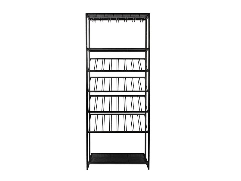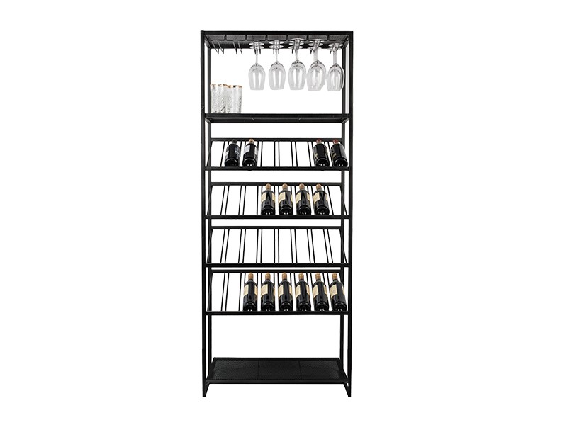 - Zwart wijnrek gemaakt van gepoedercoat ijzer.
