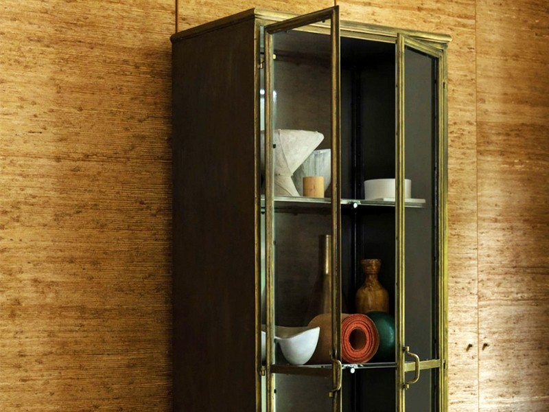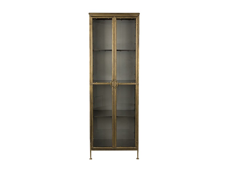 - Gepoedercoat ijzeren kast met glazen deuren.