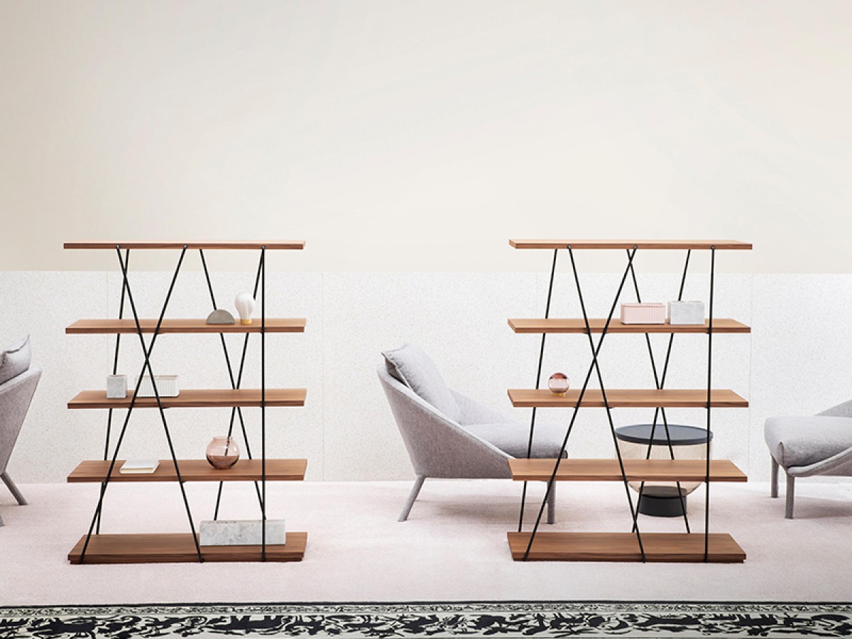 - The fine lines of the bookcase neatly wrap around the shelves, and so Mataxa Shelf becomes a curious addition with a pleasing balance.