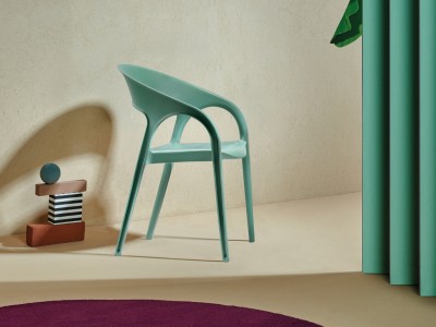 - Gossip is een polypropyleen fauteuil met bochtige en ronde vormen, licht van gewicht en stapelbaar.