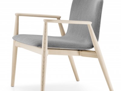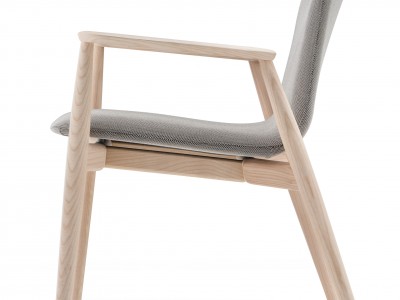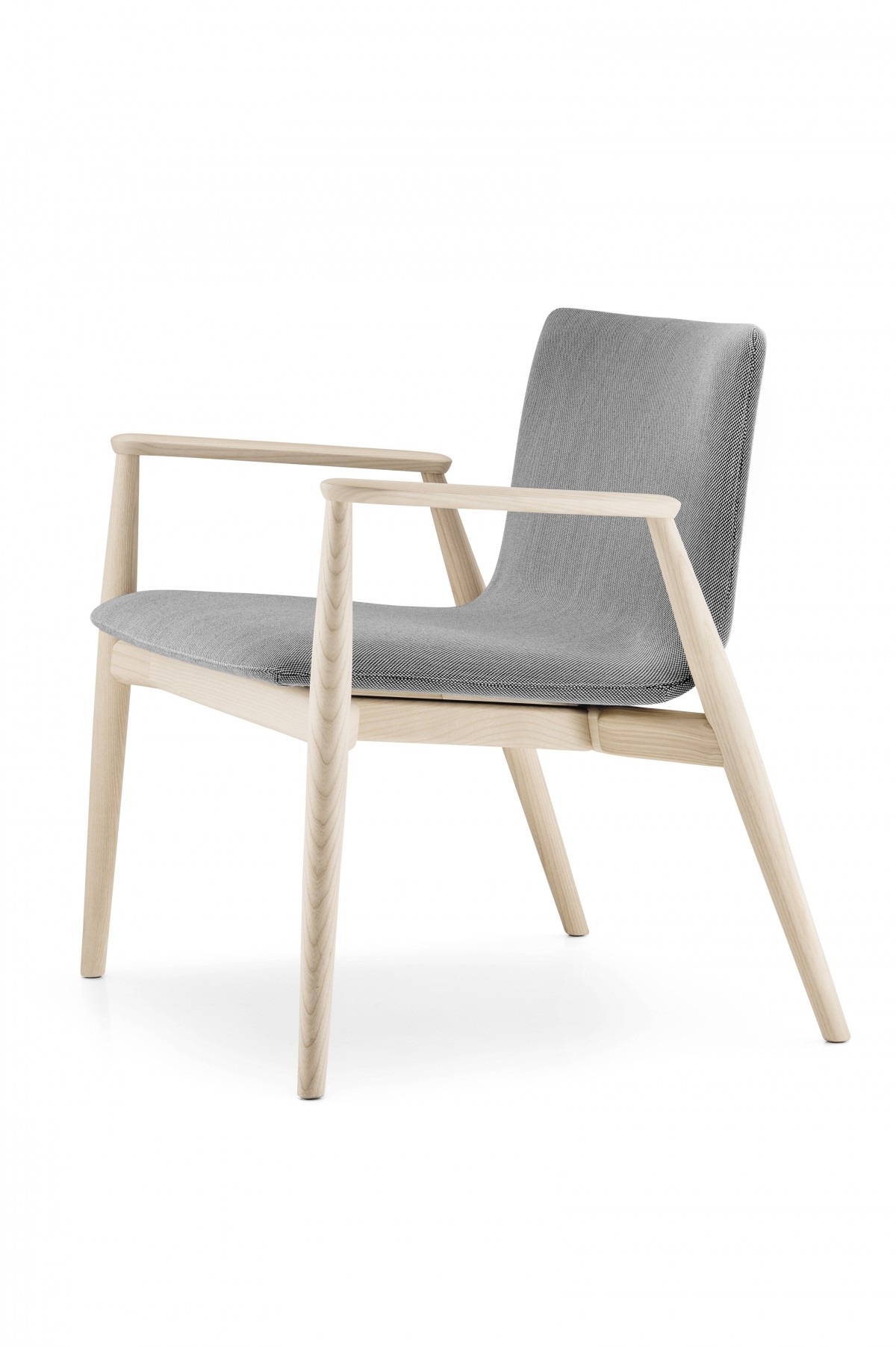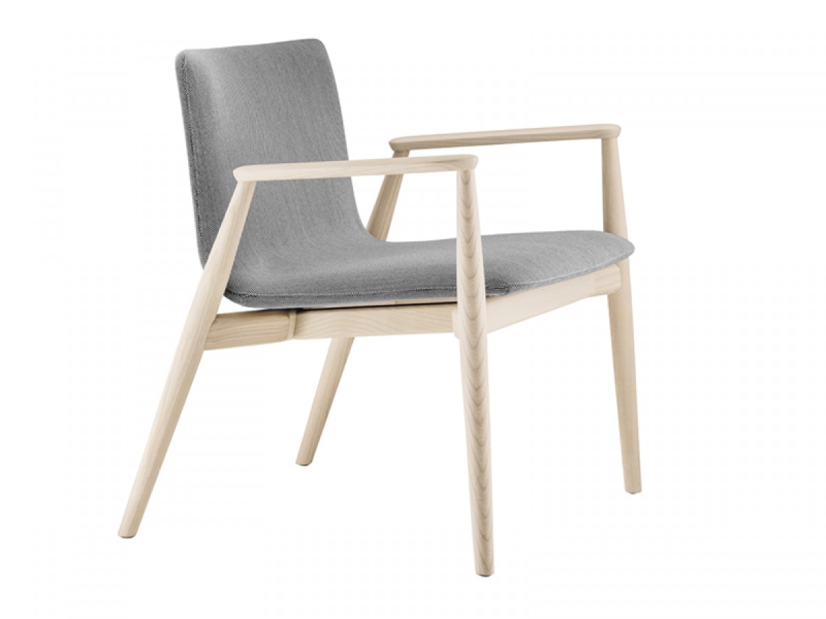 - Lounge stoel gemaakt van massief essenhout in gebleekte, zwarte of grijze gebeitste afwerking, schaal van multiplex bekleed met stof