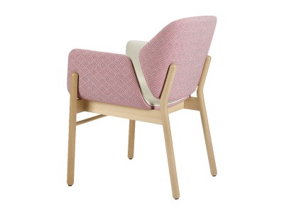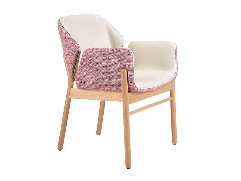 - Houten stoel met armleuningen, met een frame van gebeitst beukenhout.