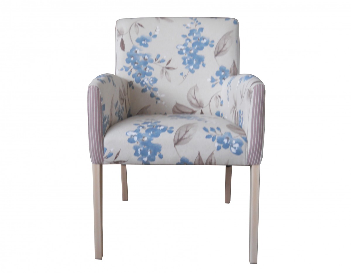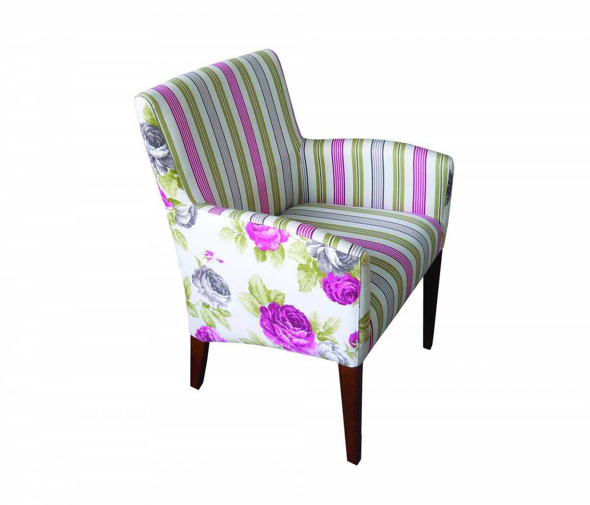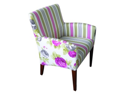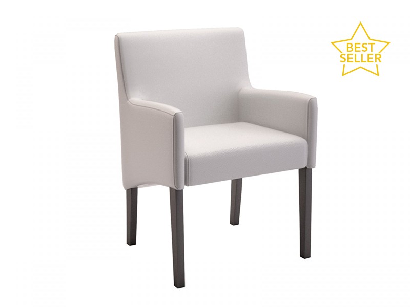 - Gestoffeerde zitting, rugleuning en armleuningen.