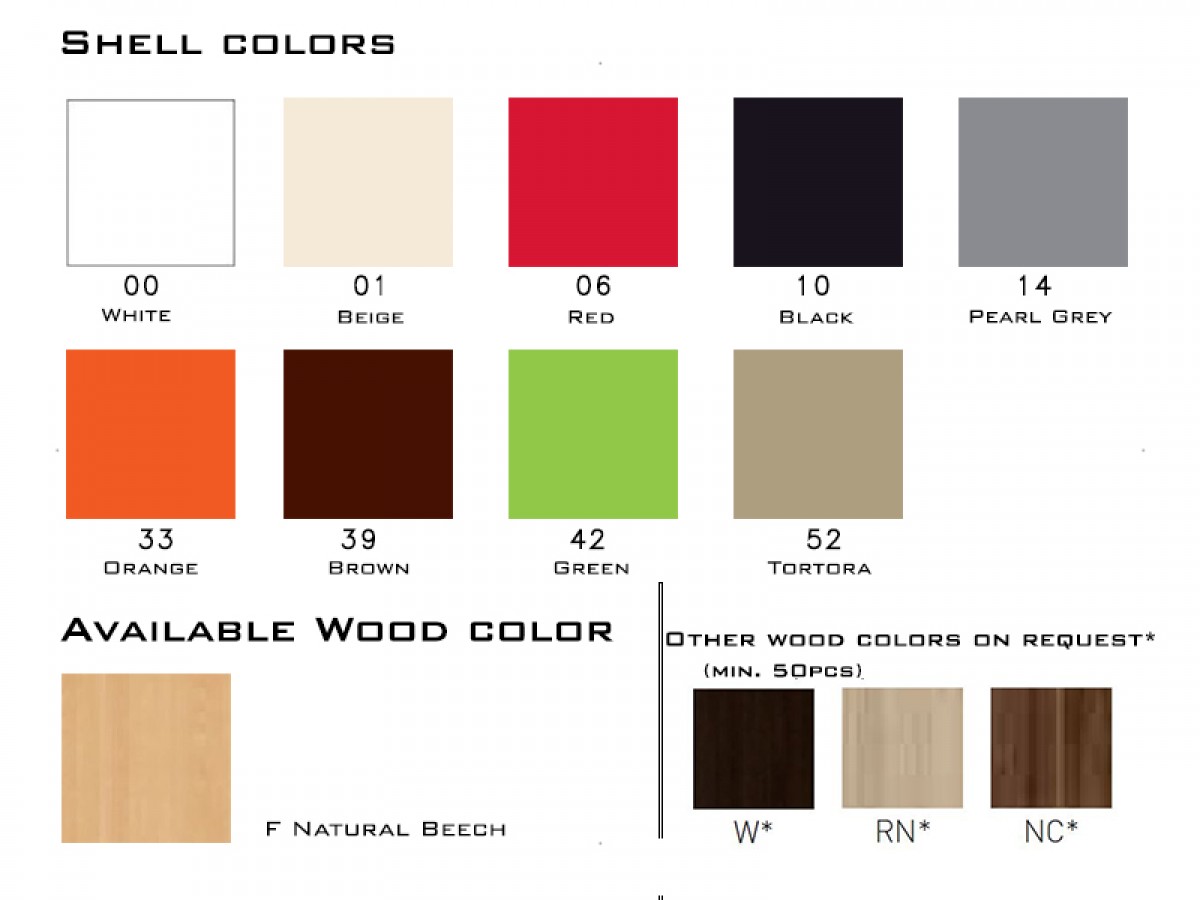 - Verkrijgbare kleuren: Wit, beige, rood, zwart, grijs, oranje, bruin en appelgroen.