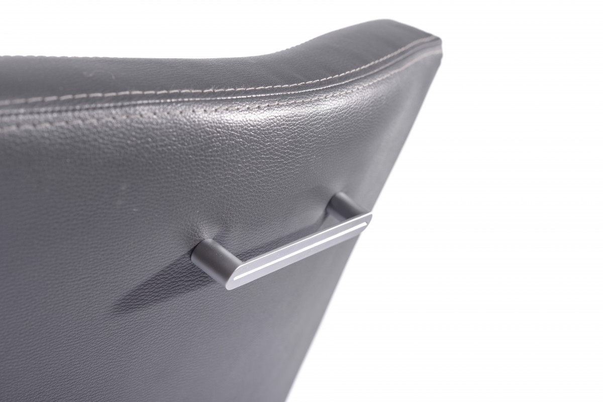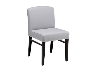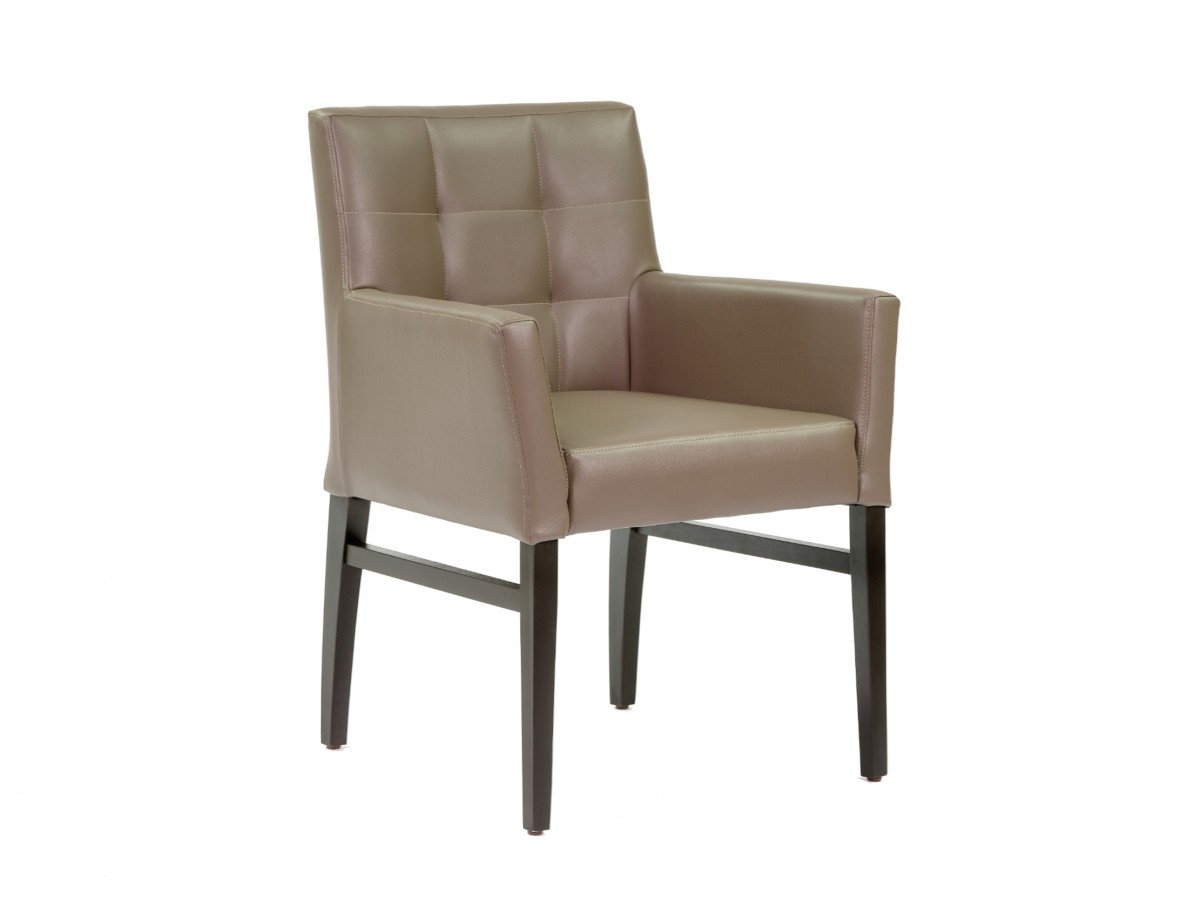 - Beukenhouten stoel met kunstleer gestoffeerde zitting en rugleuning.