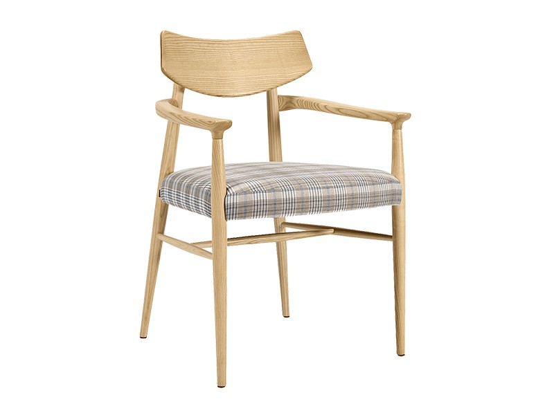 - Houten stoel van beukenhout met armleuningen.