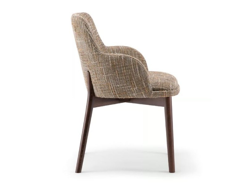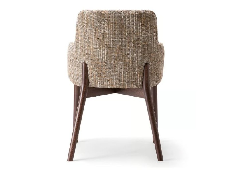 - De zitting en rugleuning van de Celine A bieden aanpasbare opties, zodat je ze kunt bekleden met een uitgebreide reeks stoffen en leer, wat een laagje verfijning toevoegt aan de houten structuur.