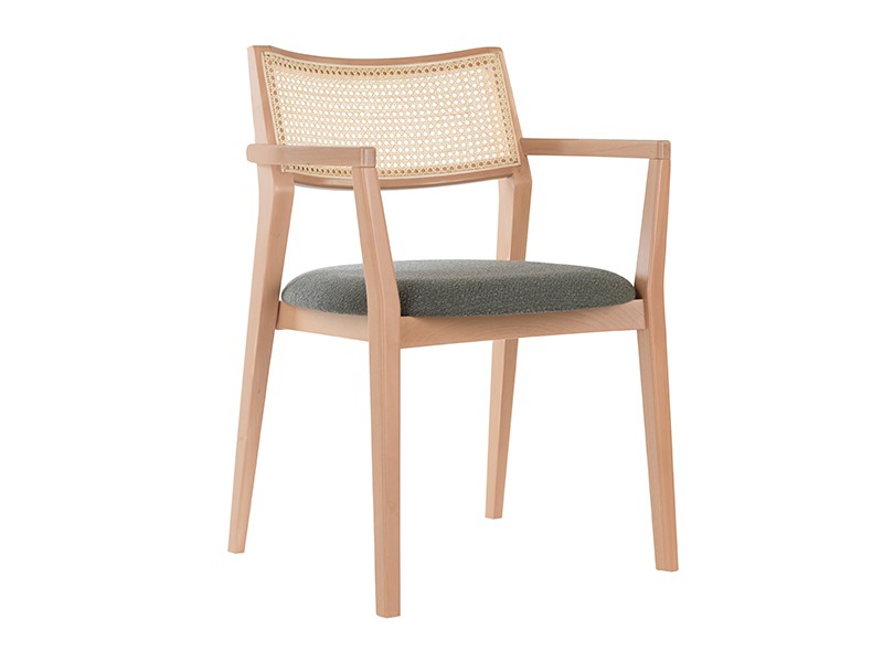 - Stoel van massief beukenhout en beuken multiplex met armleuningen.