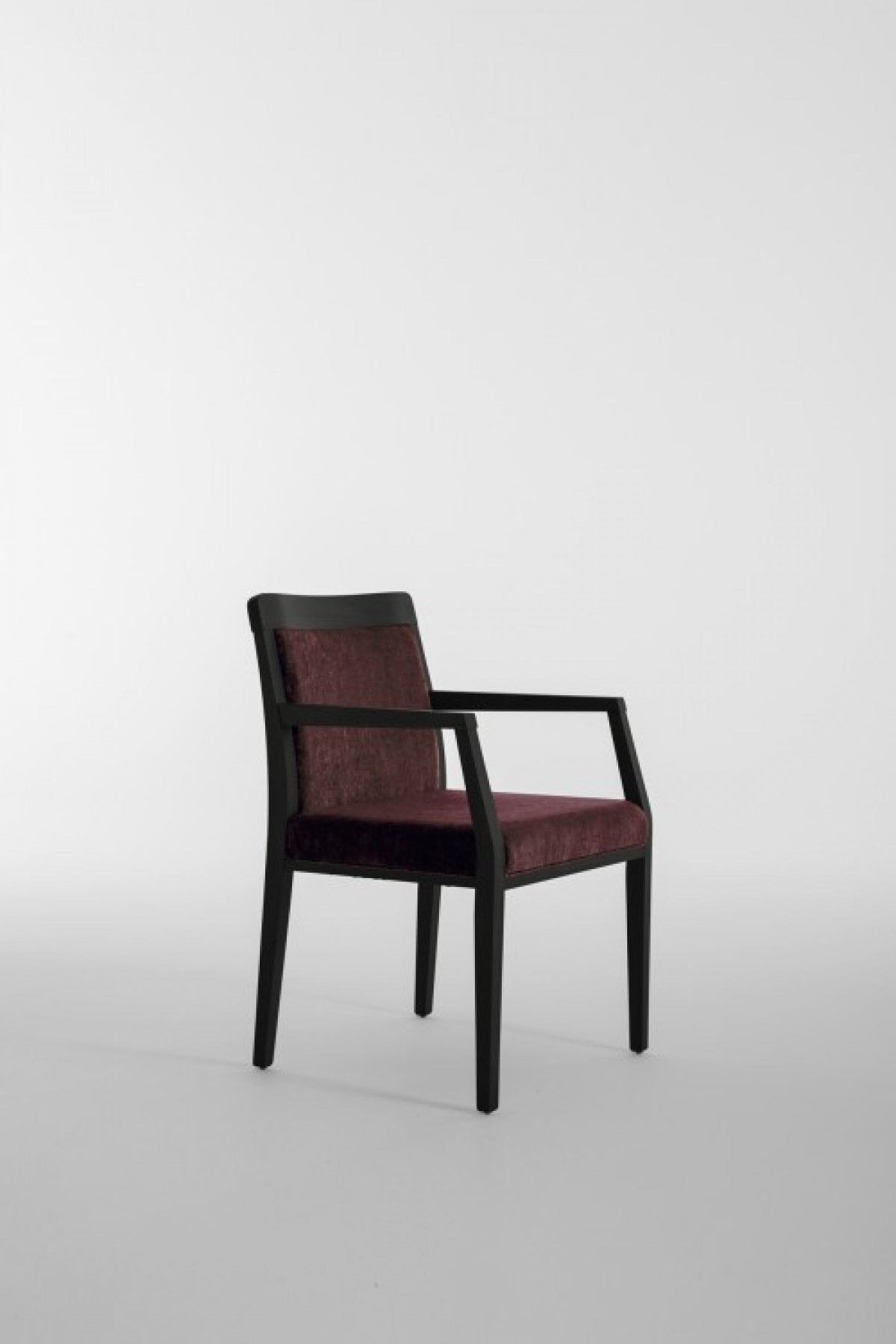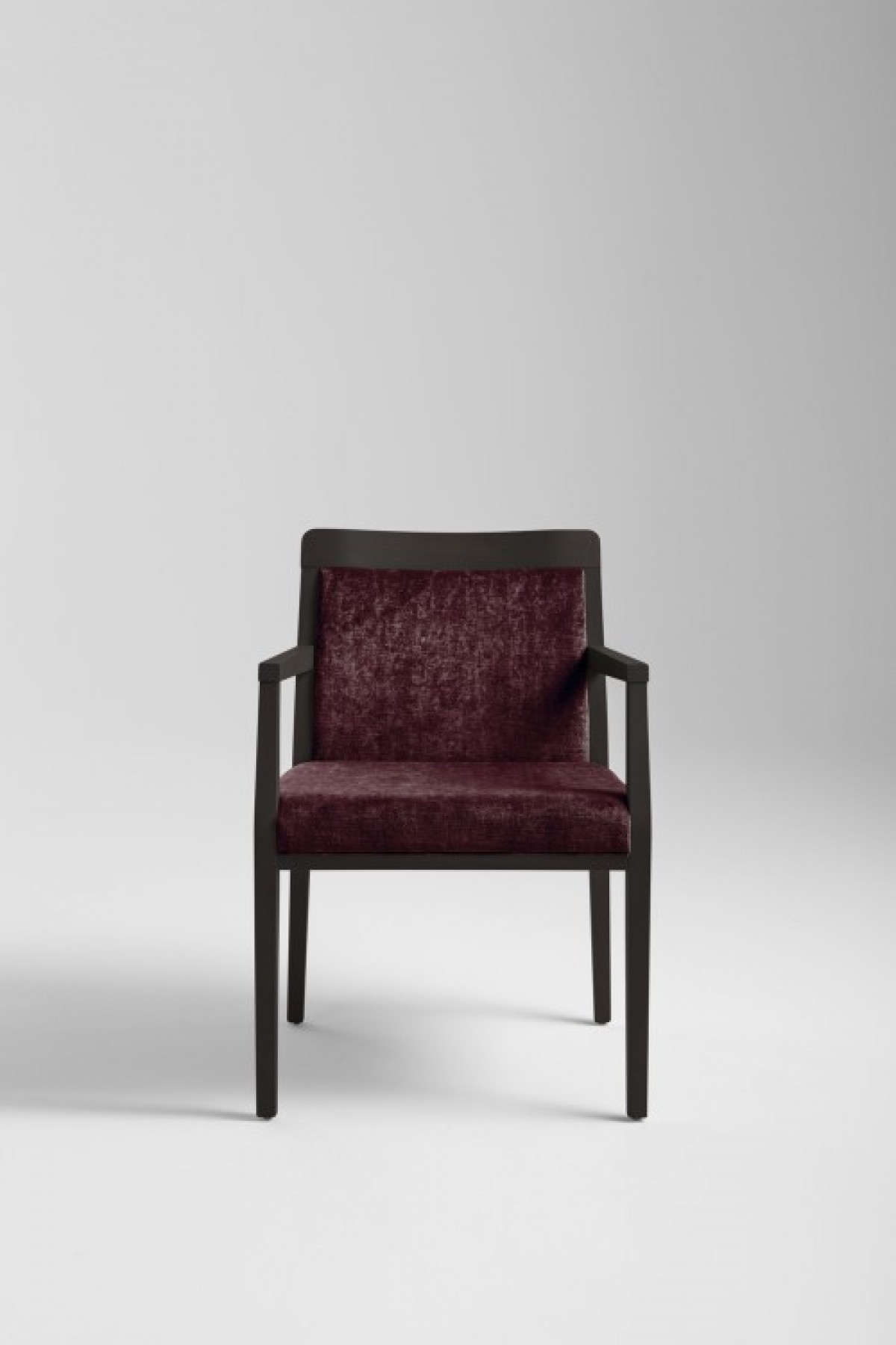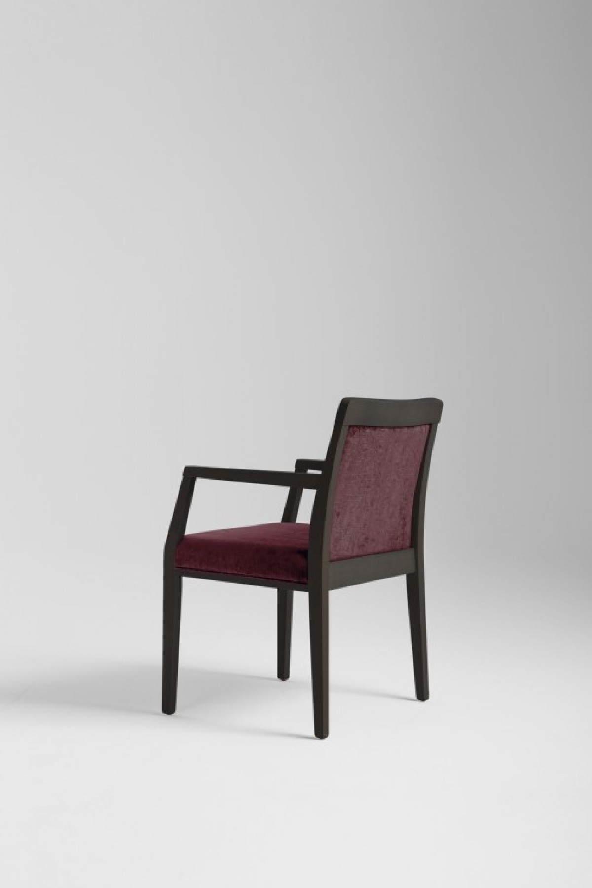 - Gestoffeerde zitting, rugleuning en armleuningen.