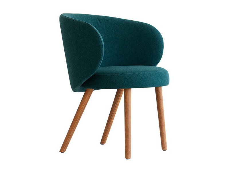 - Stoel met gestoffeerde zitting en rugleuning, met poten van essenhout;