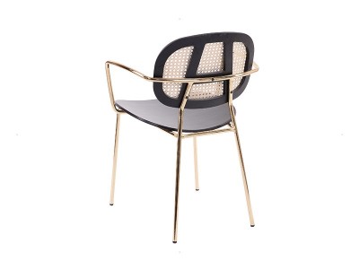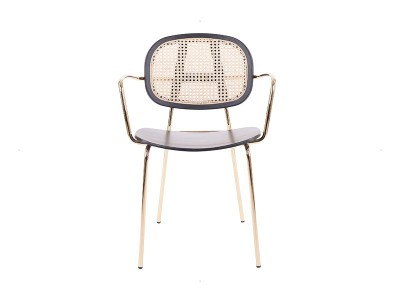 - Eternity is een eigentijdse stoel die zich onderscheidt door zijn rieten rugleuning en boeiende armleuningen die een intrigerend accent geven aan zijn moderne ontwerp.
