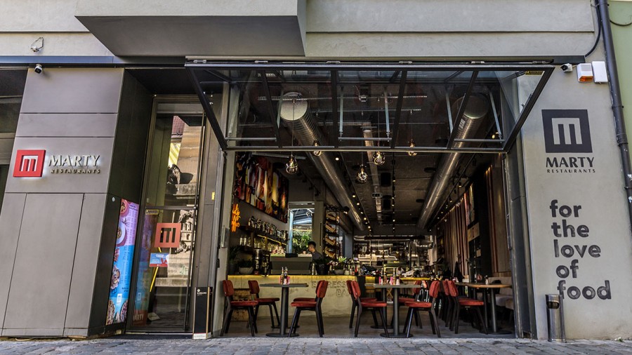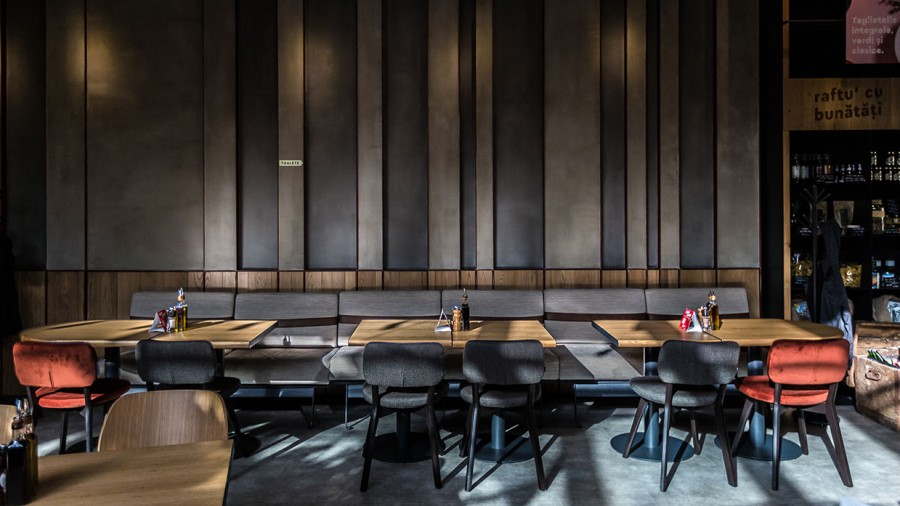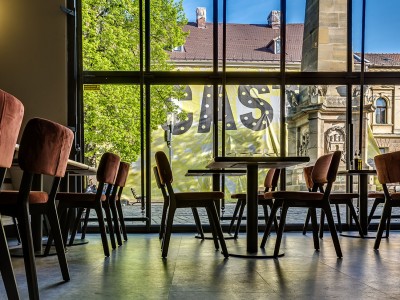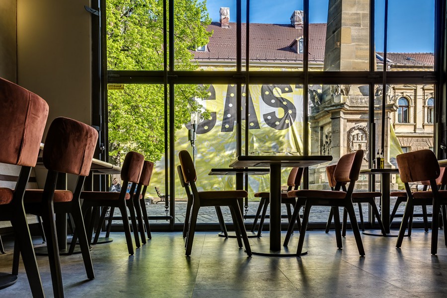 - Restaurantstoel met houten frame.