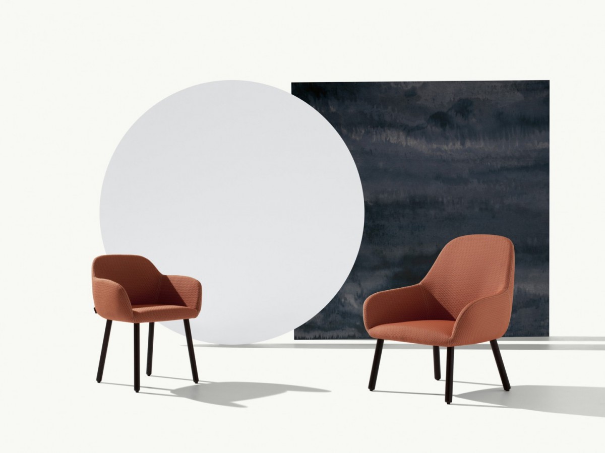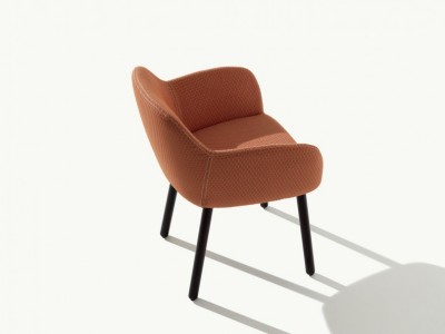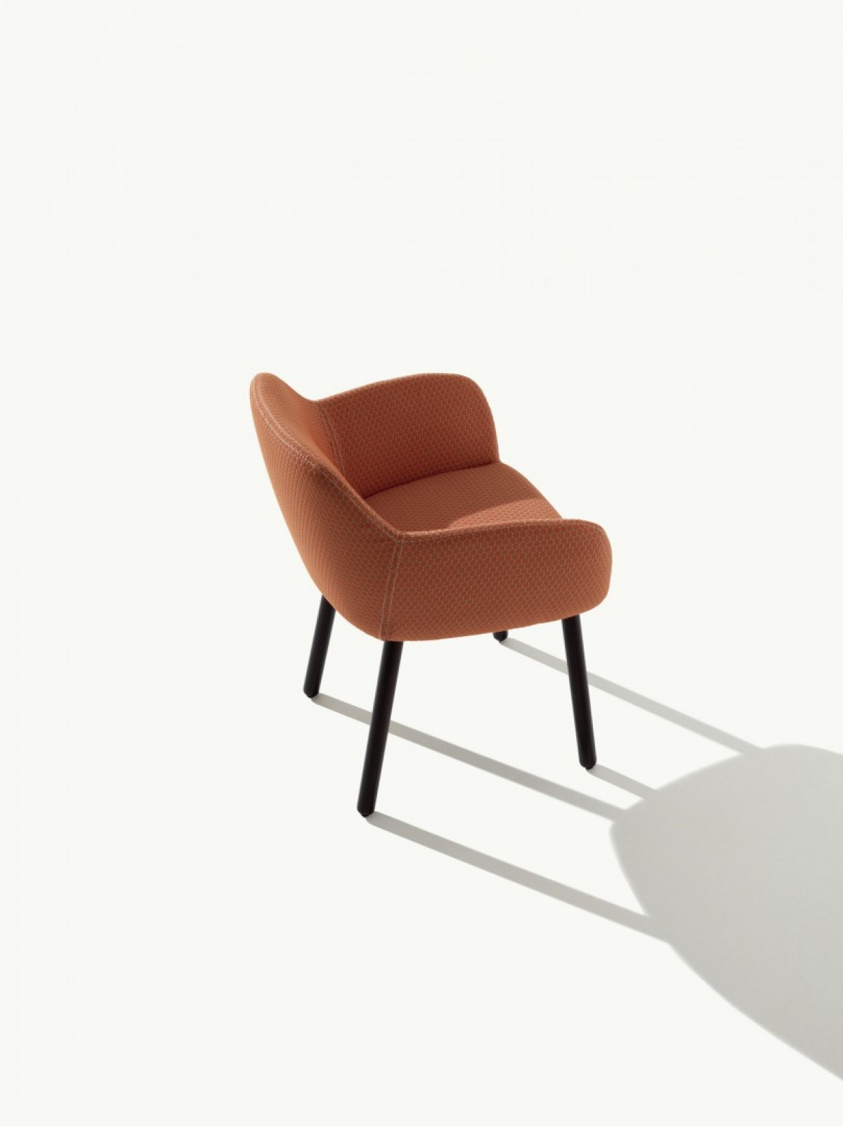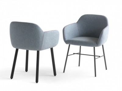 - Gestoffeerde zitting met armsteunen. Deze serie is ook verkrijgbaar met metalen poten.