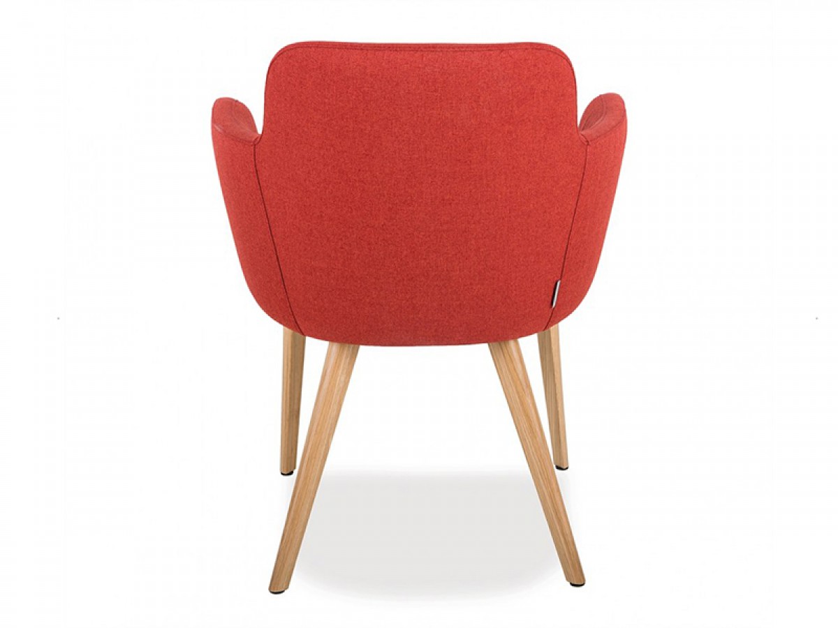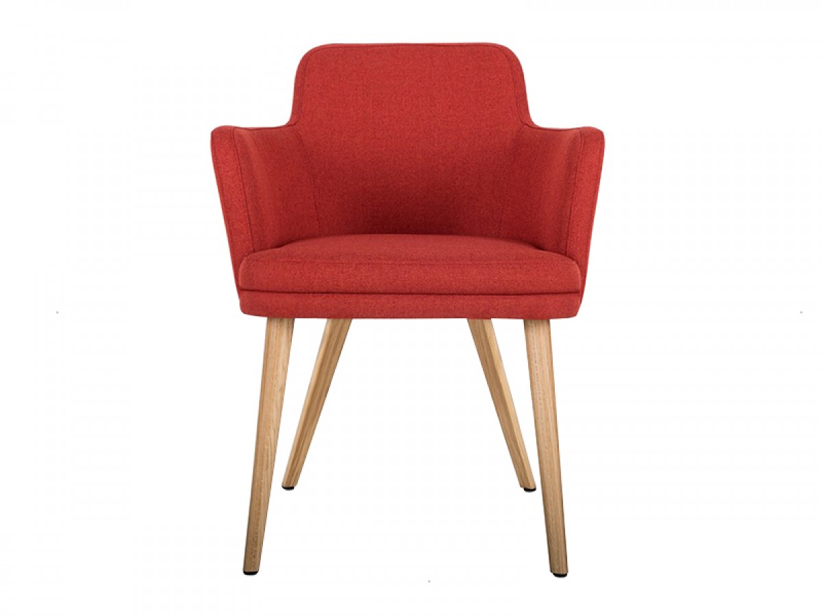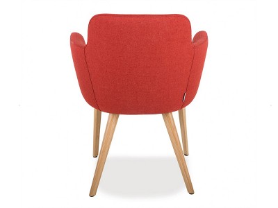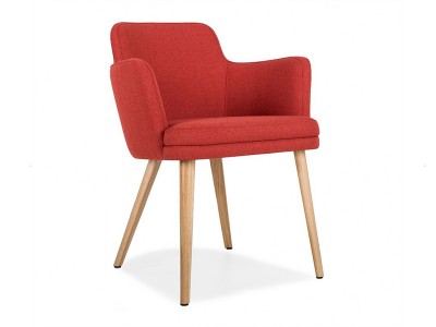 - Volledig gestoffeerde fauteuil, houten frame met poten in natuurlijk hout afwerking.