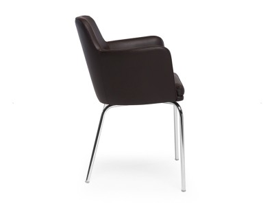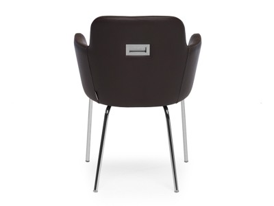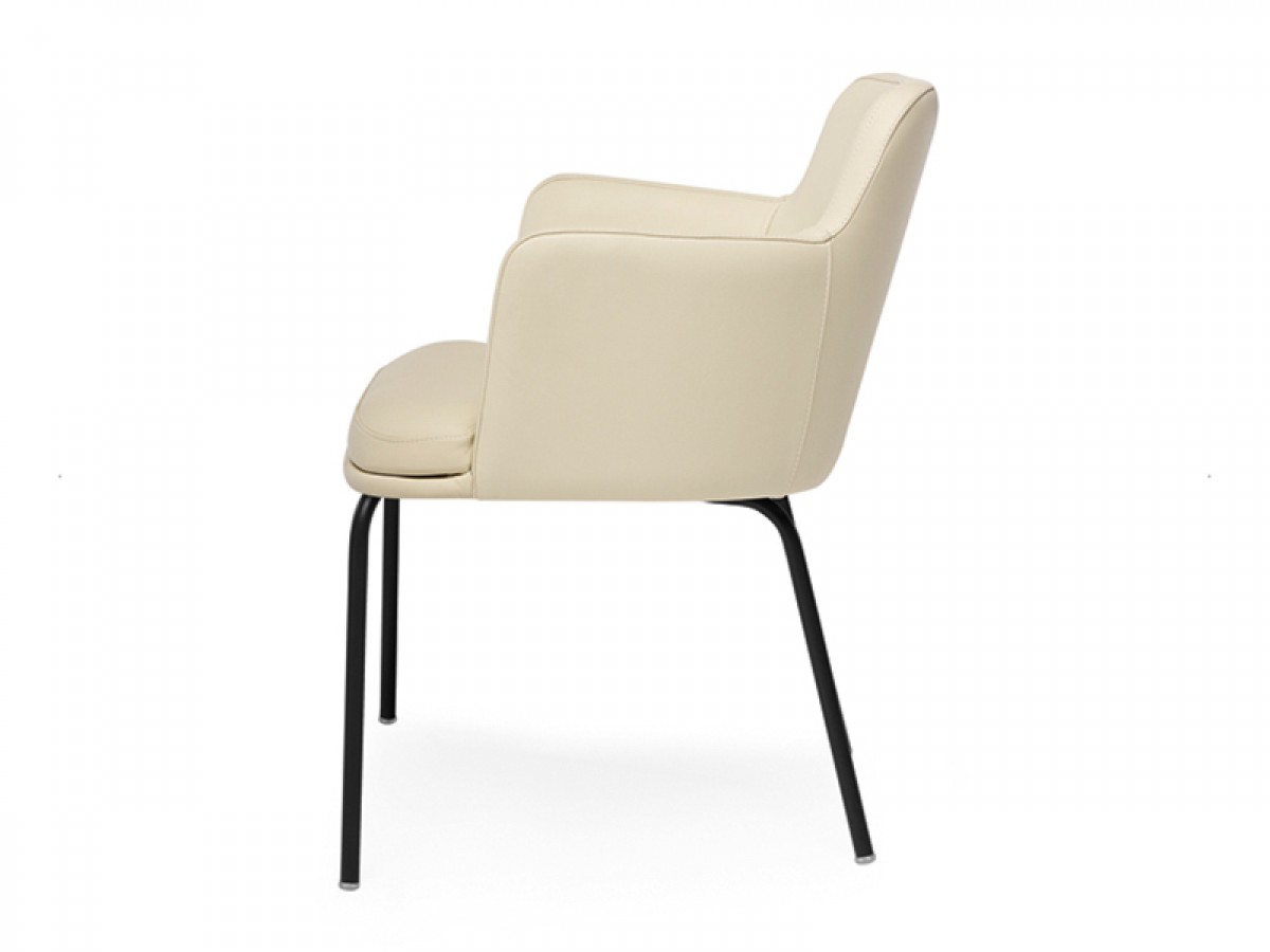 - Een eenvoudige, moderne en comfortabele stoel met metalen structuur, onderstel van 4 poten in Ø16mm buis, verkrijgbaar in wit, grijs, olijfgroen, groen, Bourgondië.