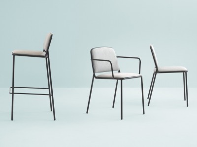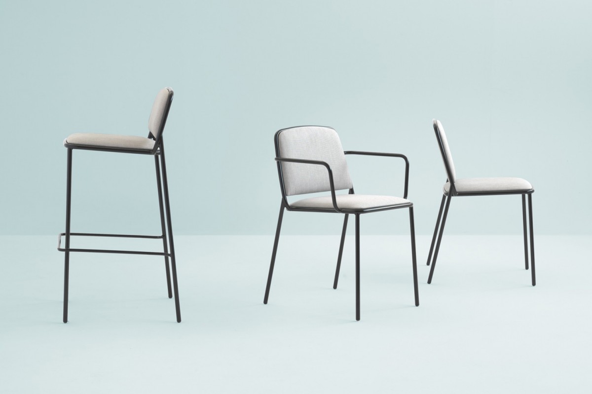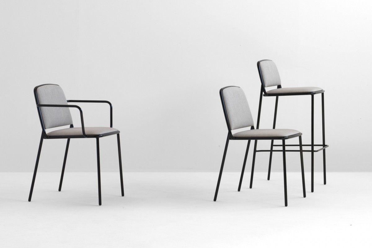- Gestoffeerde zit en rug, beschikbaar in verschillende stoffen.