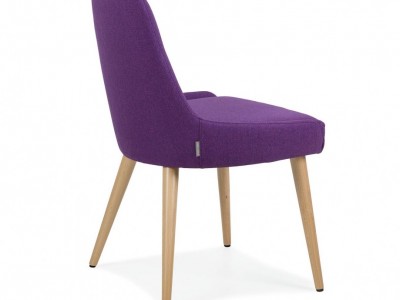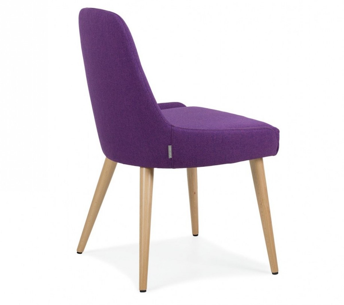 - Shine S, is een gestoffeerde houten stoel, met 4 poten in massief hout, natuurlijke houten afwerking en glijders.