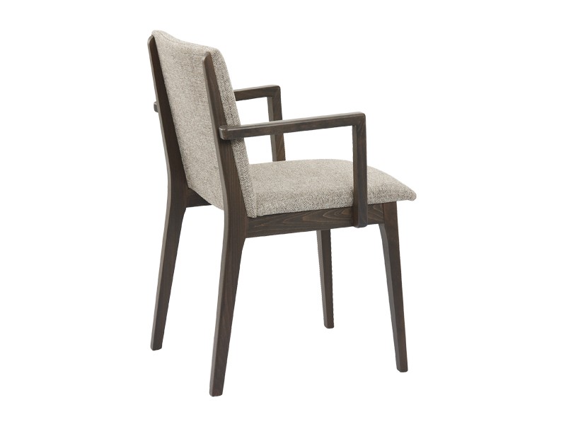 - Gestoffeerde stoel met armleuningen, met frame van beukenhout.