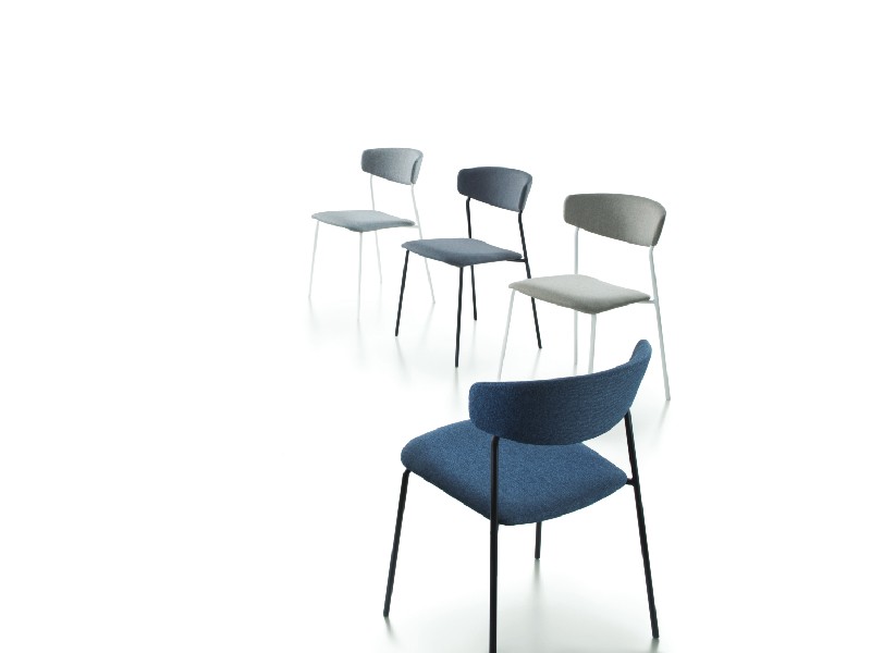 - Kenmerkend zijn de gebogen multiplex zitting en rugleuning, gestoffeerd voor comfort.