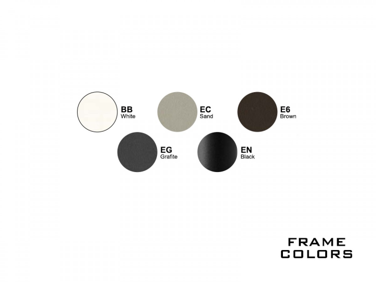 - Frame verkrijgbaar in wit, zand, grafiet, zwart of bruin gelakt staal