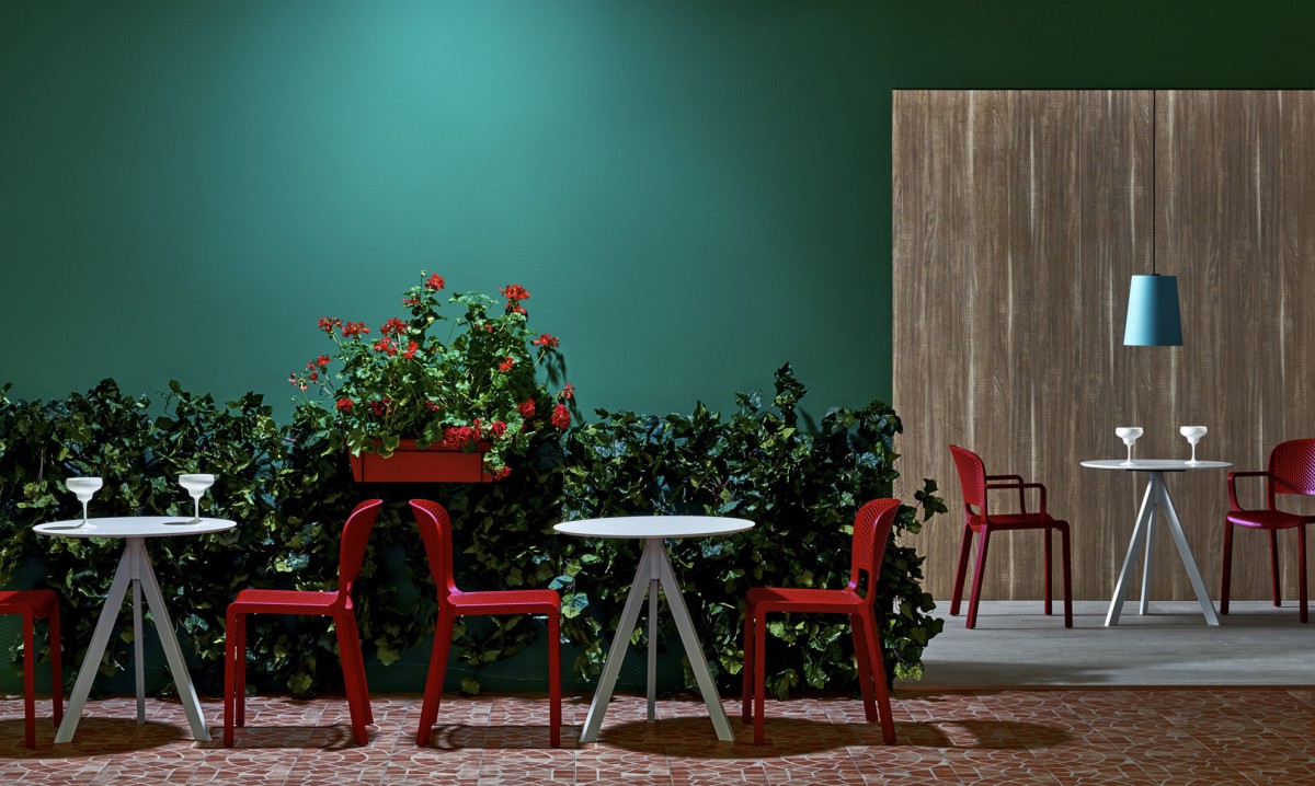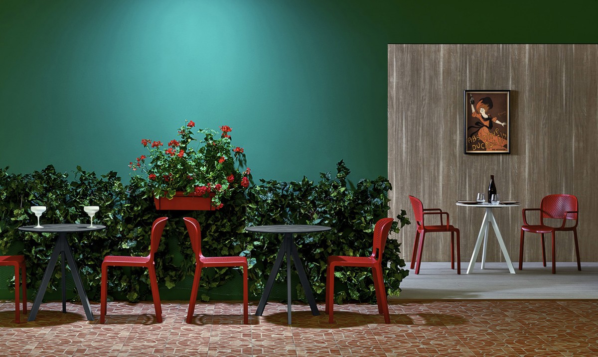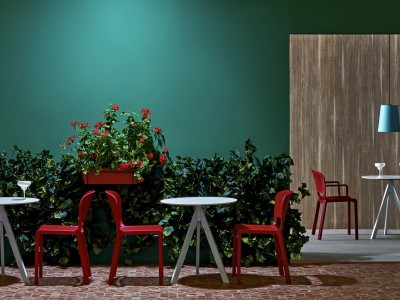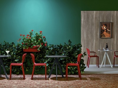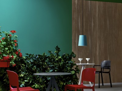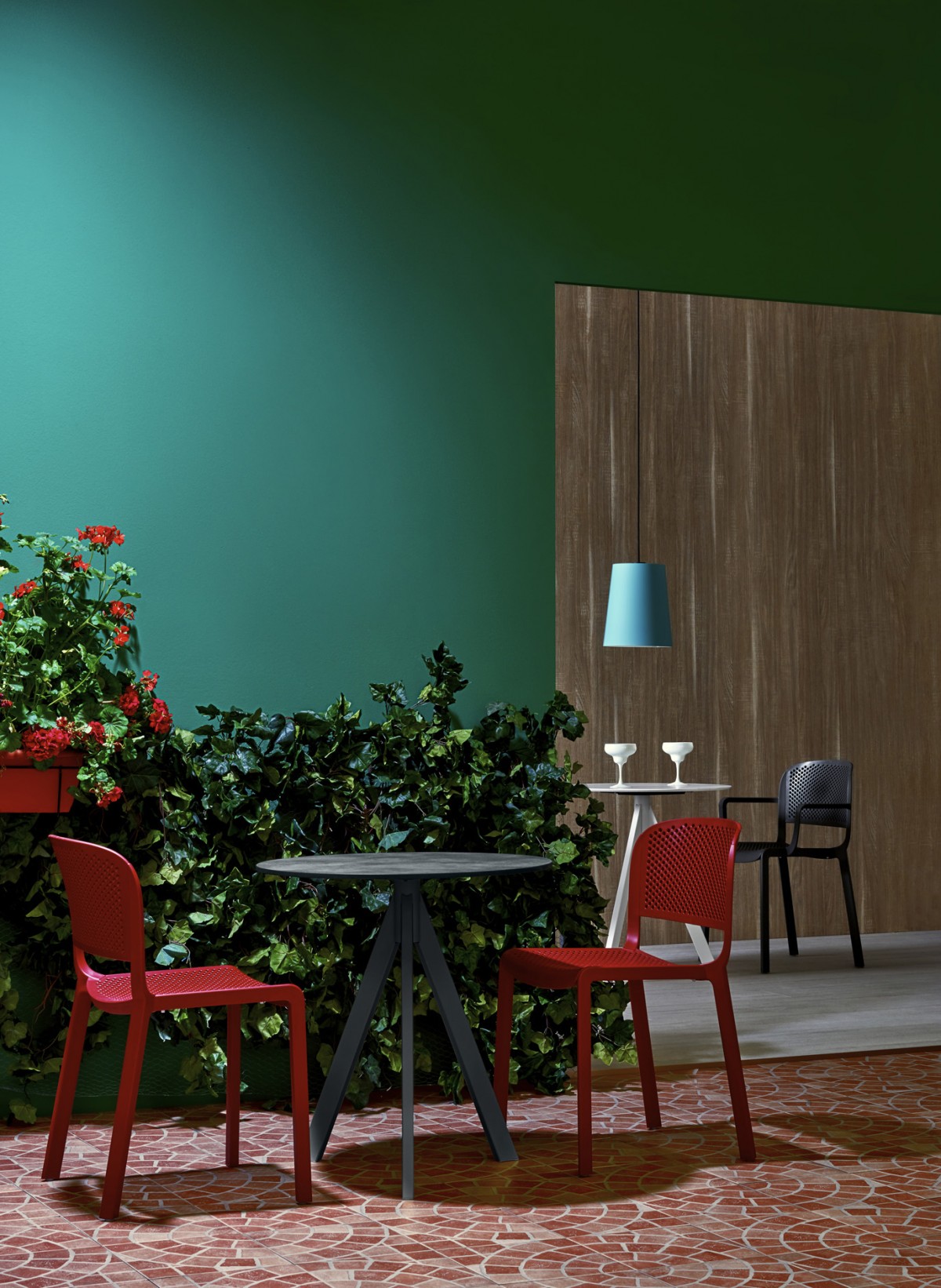 - Het kan worden gecombineerd met tafelbladen van verschillende maten en afwerkingen, ook geschikt voor buiten.
