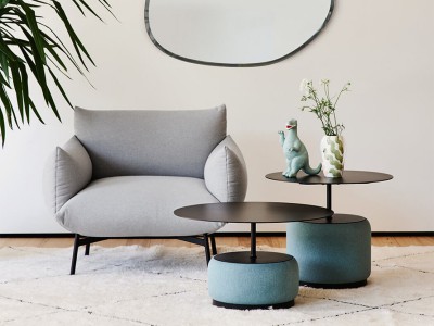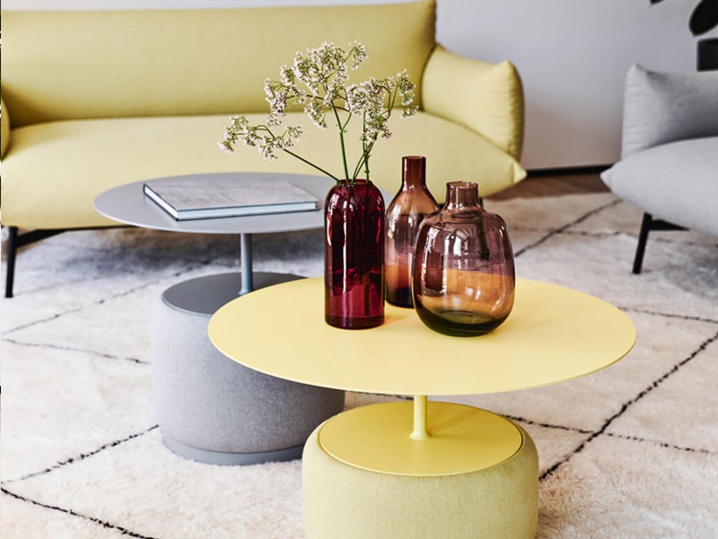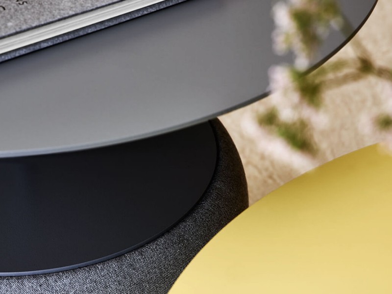 - De Bloom salontafel bestaat uit twee belangrijke onderdelen: een uniek rond onderstel dat bekleed kan worden met stof, leer of kunstleer en geluidsabsorberende eigenschappen heeft.