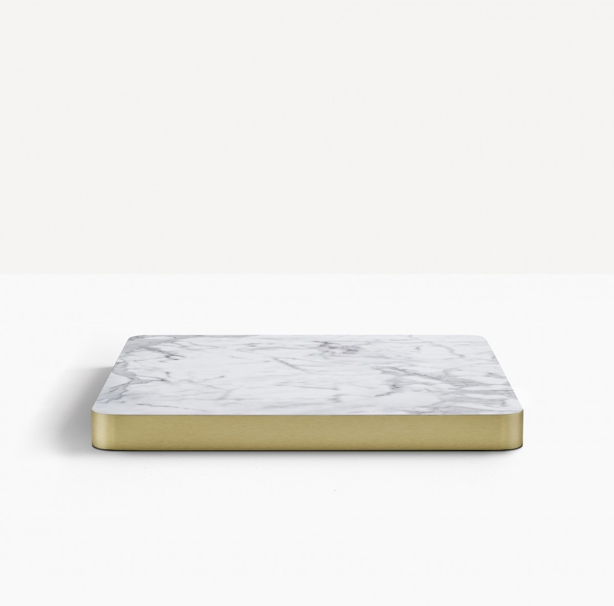 - Het blad van gelamineerd marmer heeft een glanzende afwerking.