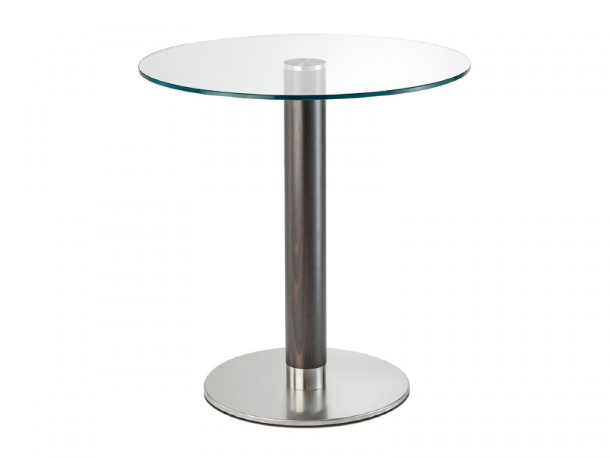 - Inox tafelonderstel, voet van geborsteld roestvrij staal en beuken gefineerde buis.