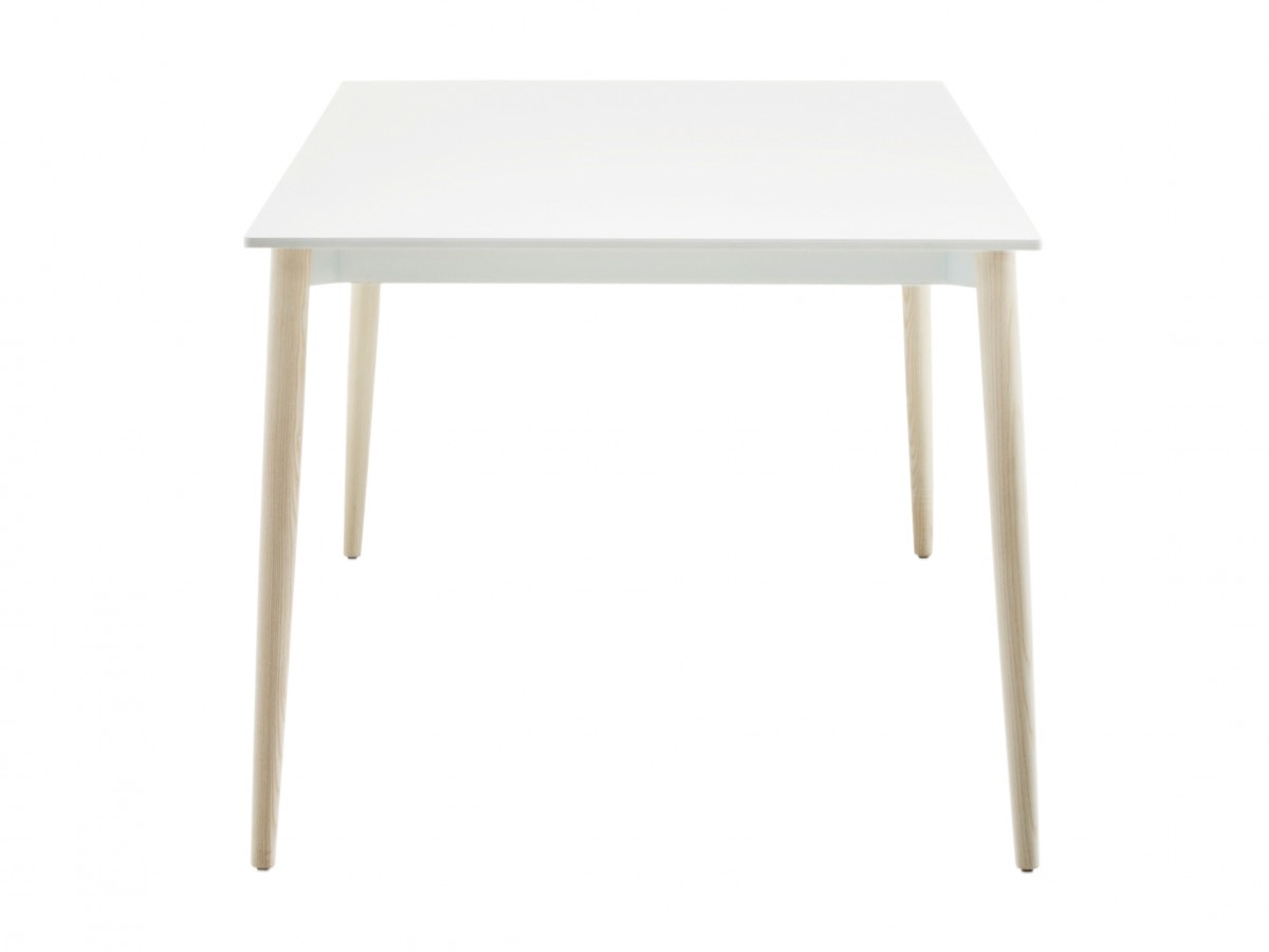 - Het tafelblad is verkrijgbaar in massief laminaat, de poten zijn van massief essenhout.
