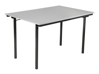 - Klaptafel met melamine spaanplaat blad en hamerslag U-vormig stalen frame.