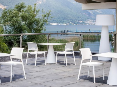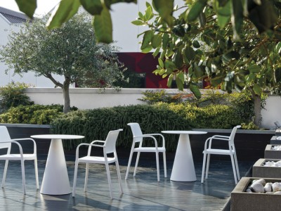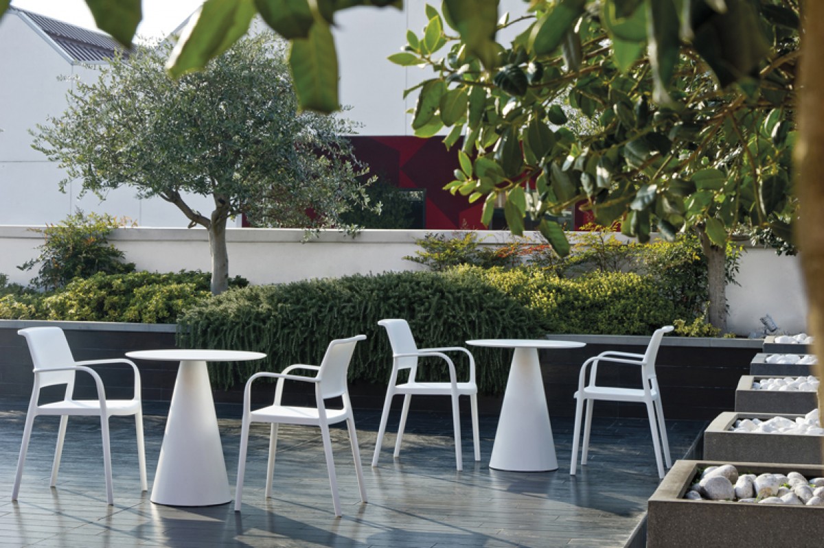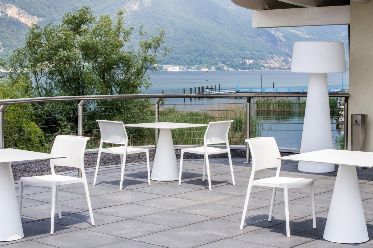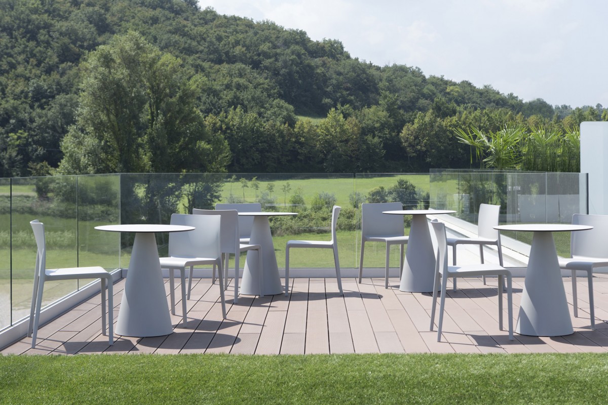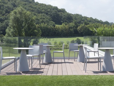 - Polypropyleen tafelpoot kan perfect gecombineerd worden met een kunststof, glazen of poedercoat-stalen tafelblad.