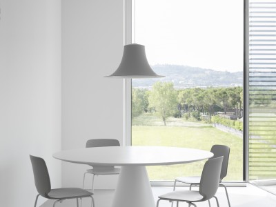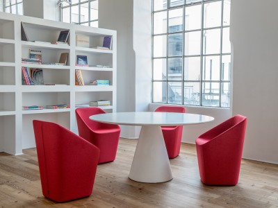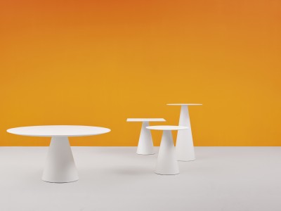 - Ikon Big met polyethyleen voet, laminaat top 30 mm of gelakte mdf top met geballast voet.