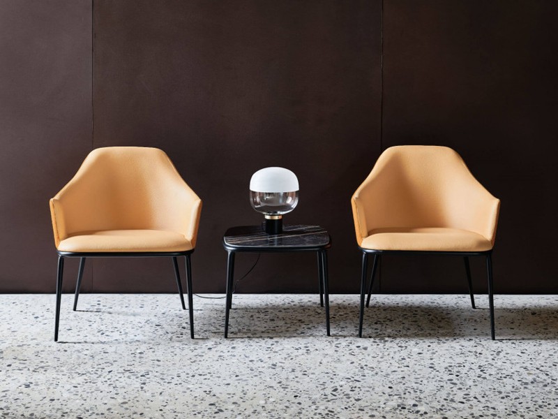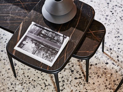 - Koffietafel Lea, met een stevig onderstel met vier poten van gelakt metaal. Het blad van deze salontafel is verkrijgbaar in hout of keramiek naar keuze, waardoor er een reeks opties is die passen bij de gewenste esthetiek en functionaliteit.