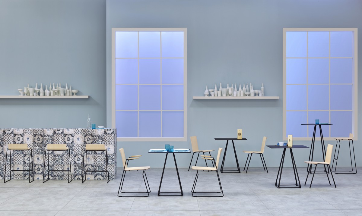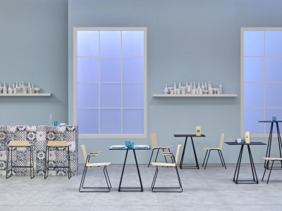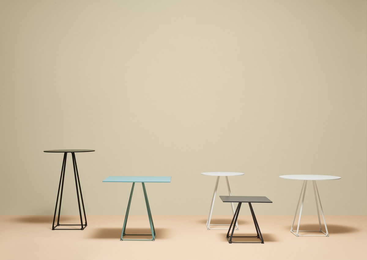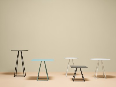 - De basis bestaat uit vier trapeziumvormige stalen staven en kan worden gecombineerd met tops van verschillende afmetingen en afwerkingen.