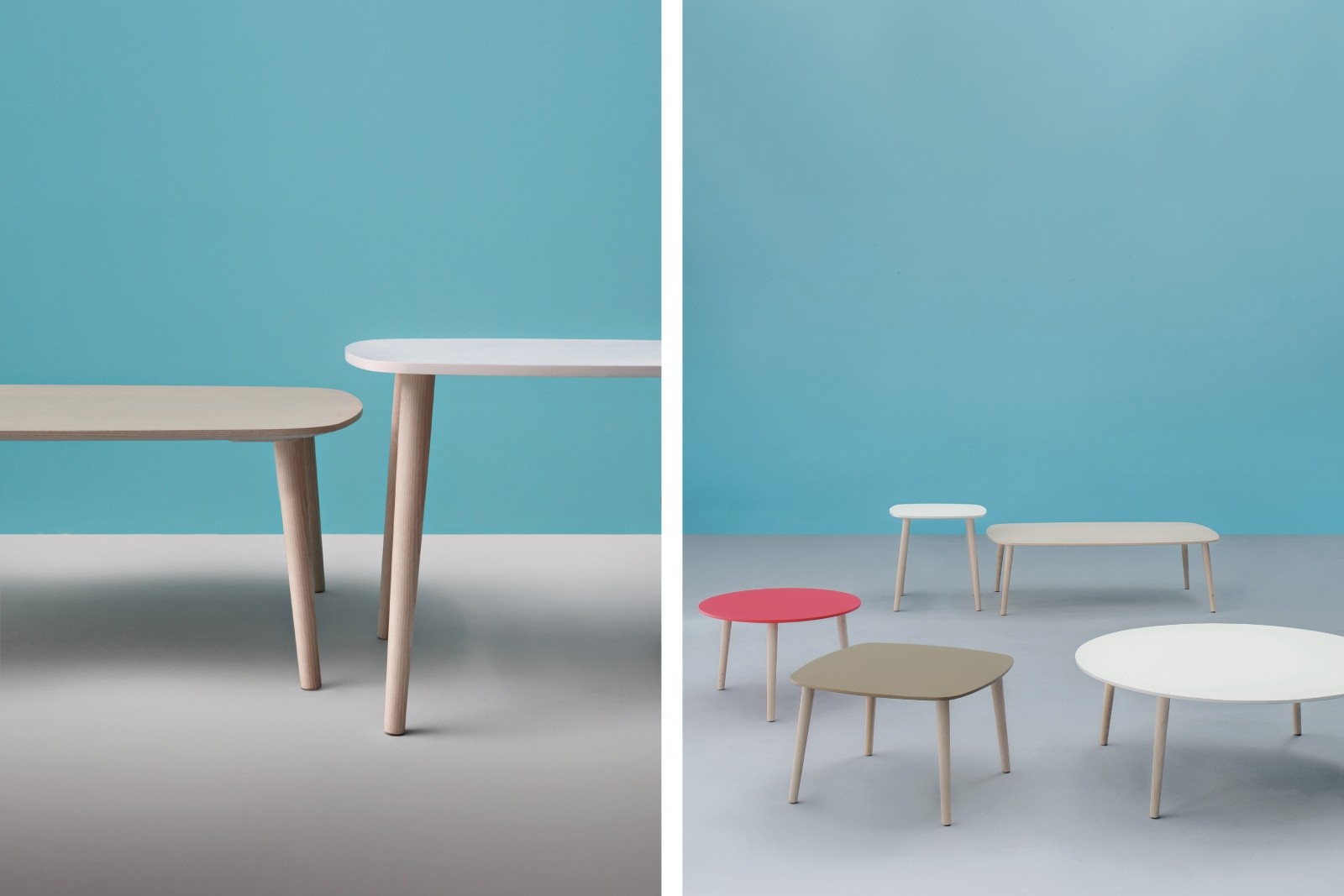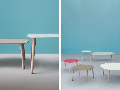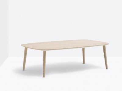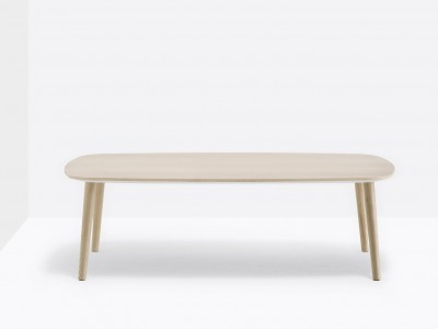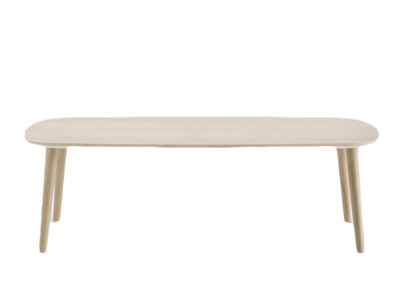 - Salontafel met taps toelopende massief essenhouten poten, inclusief gefineerd essenblad.