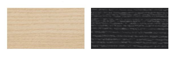 - Afwerkingen gefineerd blad: FR: gebleekt essen, AN: zwart gelakt essen met zichtbare nerven