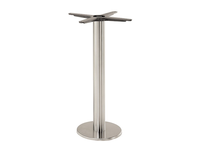 - Tafel met roestvrijstalen kolom en basis die aan de vloer is bevestigd.