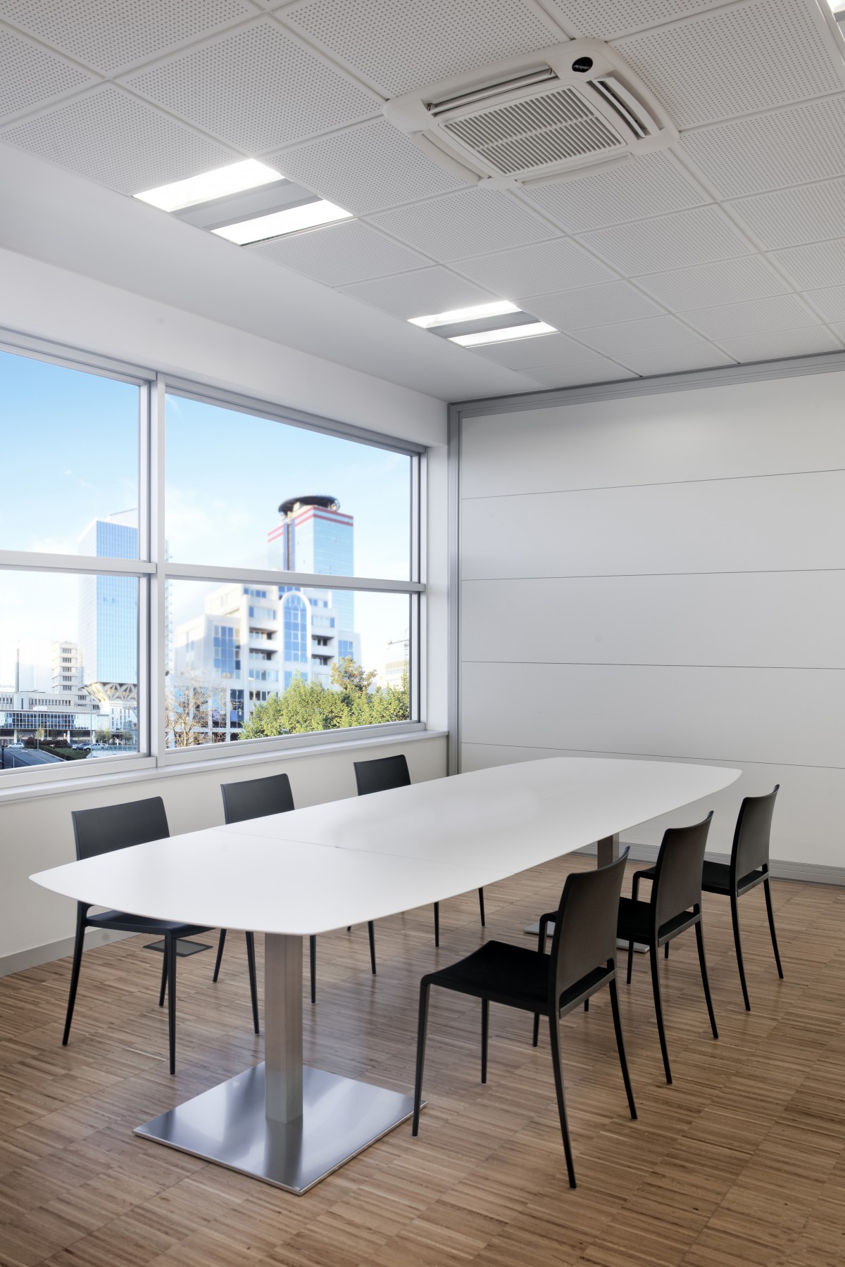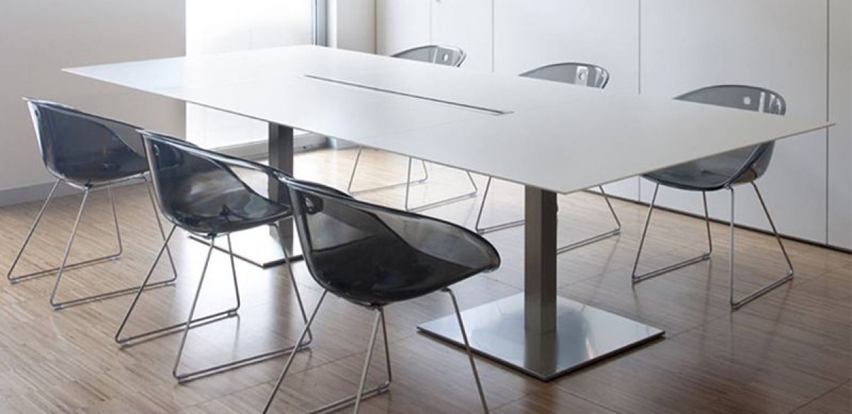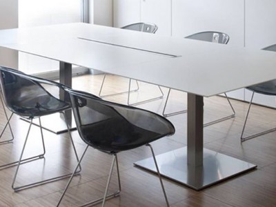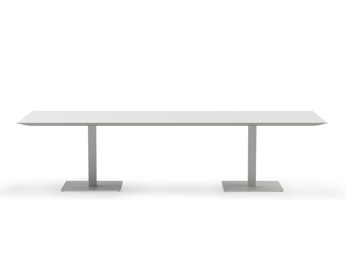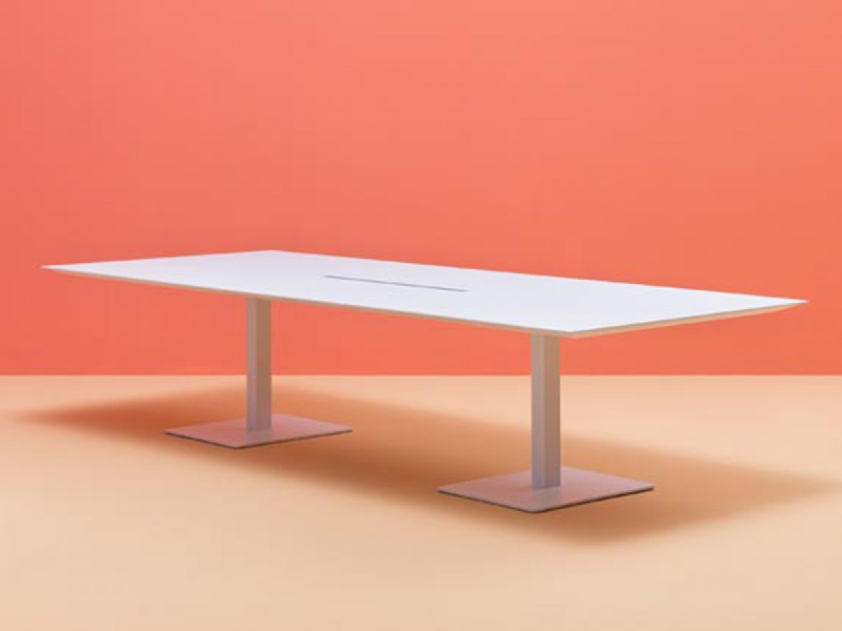 - Het is verkrijgbaar met een rechthoekig tafelblad, gecombineerd met vierkant geborsteld roestvrijstalen tafelvoeten en met het bureau kabelbeheer in geëxtrudeerd aluminium als optie.