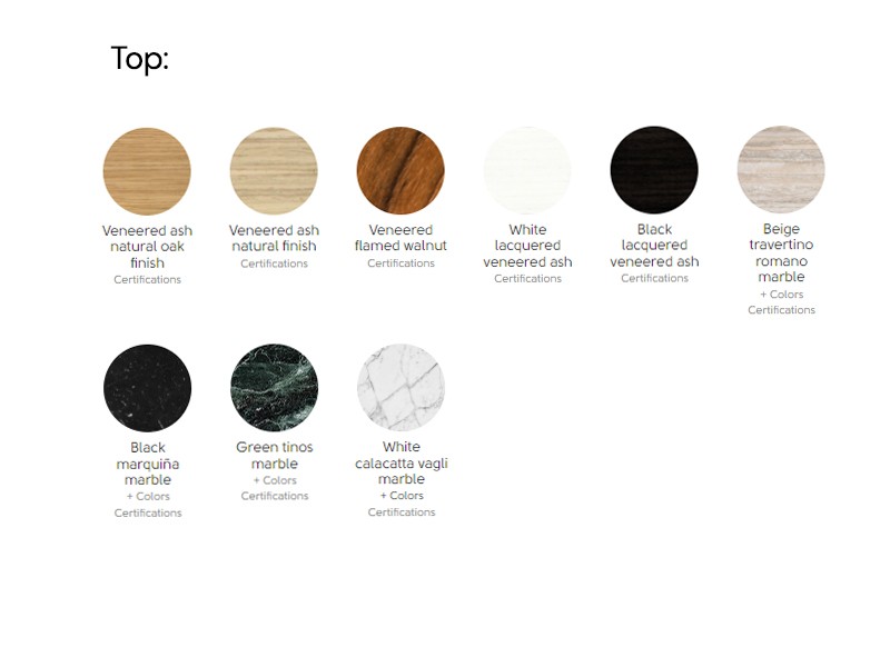 - Deze tafel heeft een centraal gelakt metalen onderstel dat zowel stabiliteit als een vleugje moderniteit biedt. Het ronde tafelblad is verkrijgbaar in verschillende luxe materialen, waaronder gefineerd hout, kristalkeramiek en marmer. Let op: de ø180 maat is niet beschikbaar met een kristal keramisch blad.
