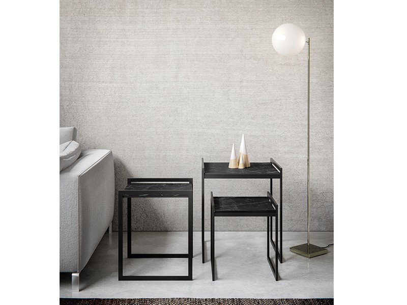 - Deze bijzettafels hebben een stalen onderstel en een HPL bovenblad, verkrijgbaar in verschillende vormen en kleuren.