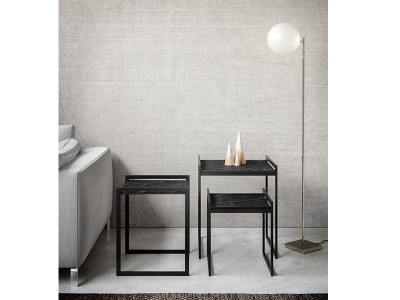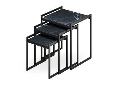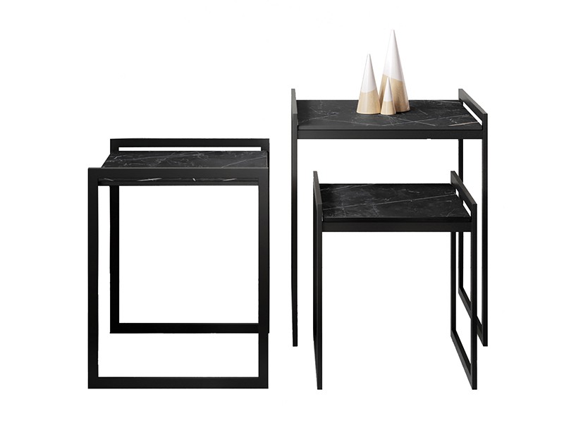 - Een collectie van drie koffietafels met verschillende afmetingen: