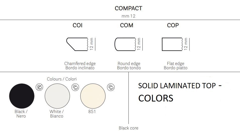 - Massief laminaat Compact tafelblad.