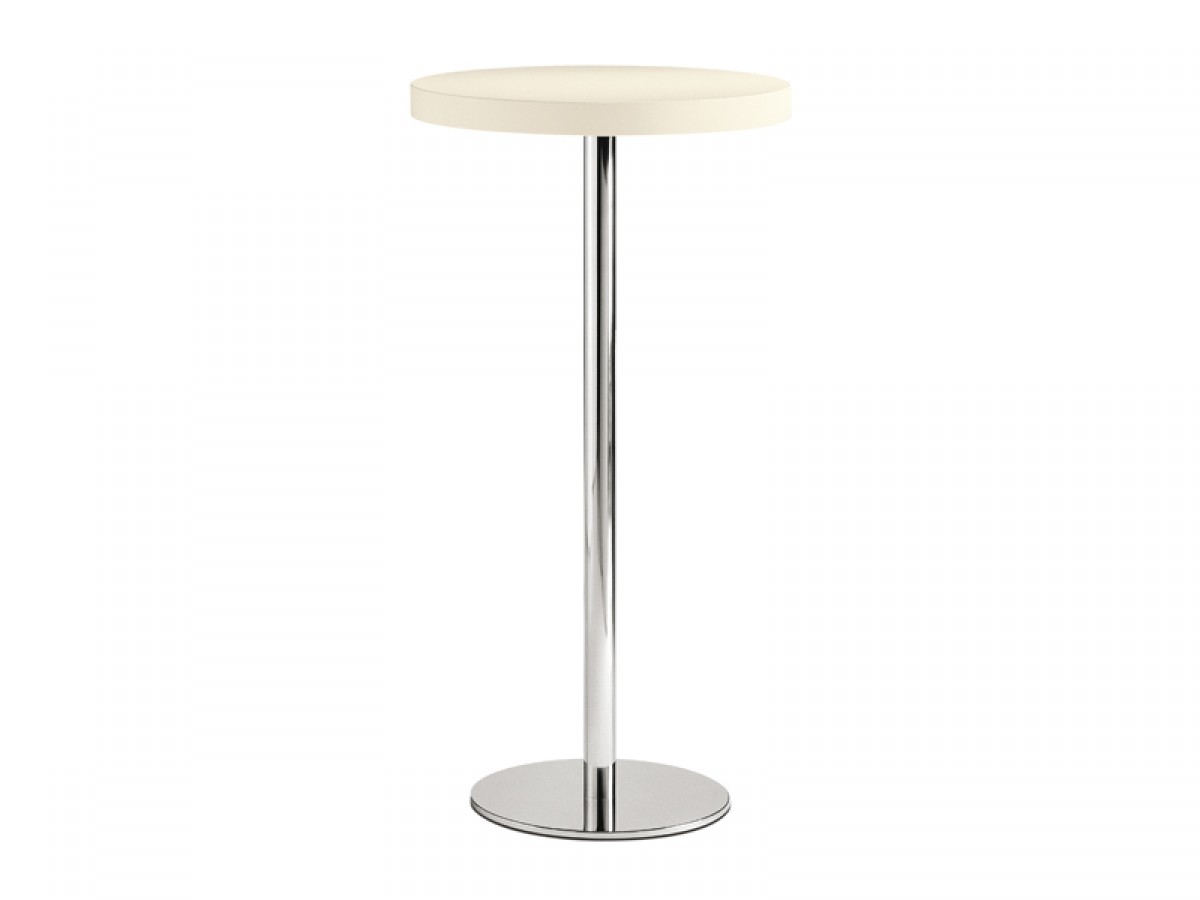 - Inox roestvrijstalen poseur tafel, versie met Ø5cm gepolijste roestvrijstalen kolom en voet.